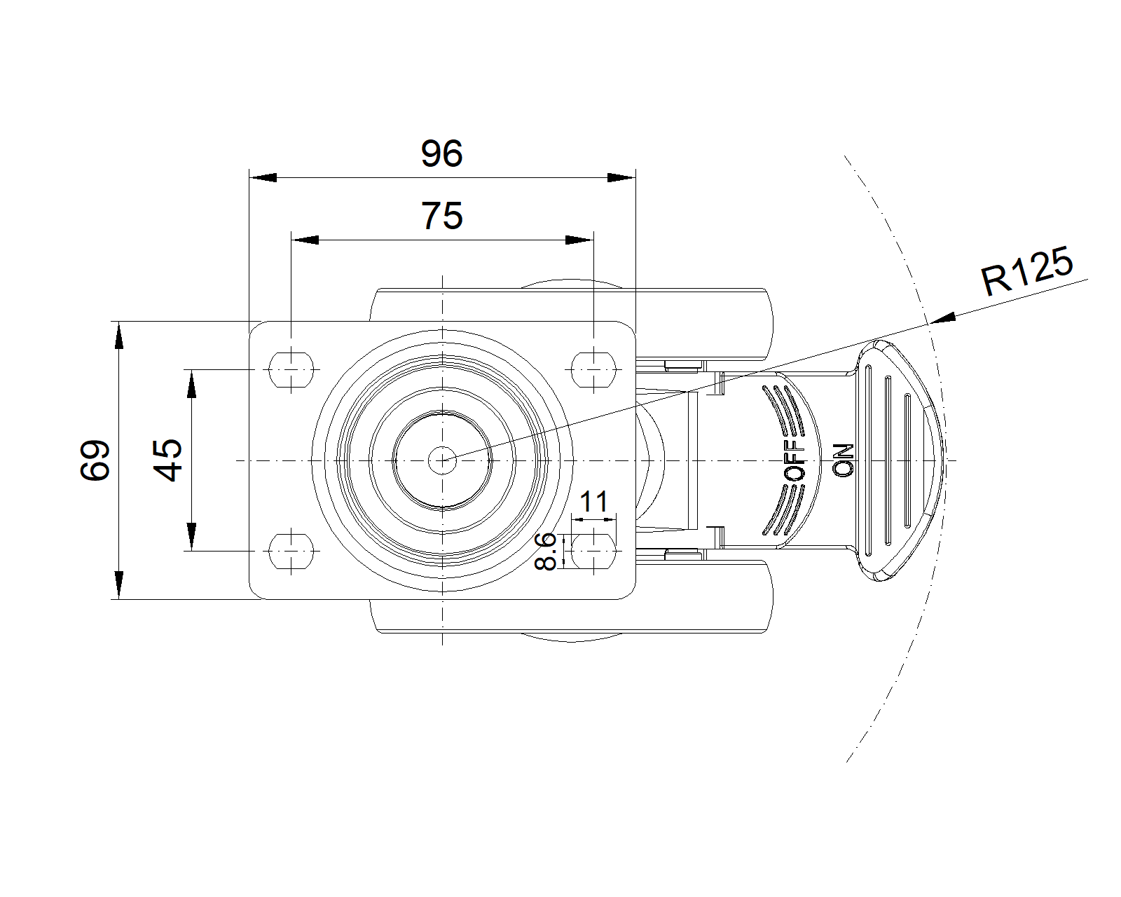 Long Total Brake Casters, 75x45 angled perforated Top Plate