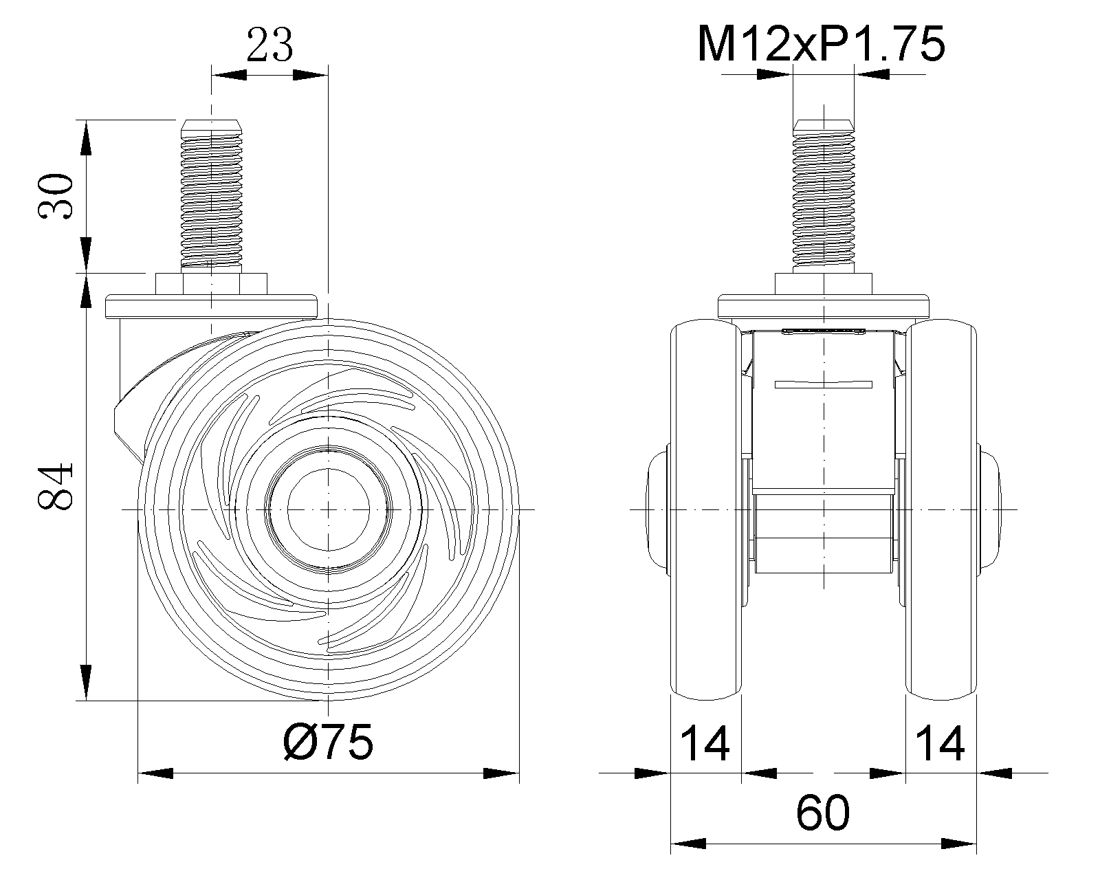 | Resolute Rubber wheel (all black) Wheel Diameter x Wheel Width 75 x 14mm |