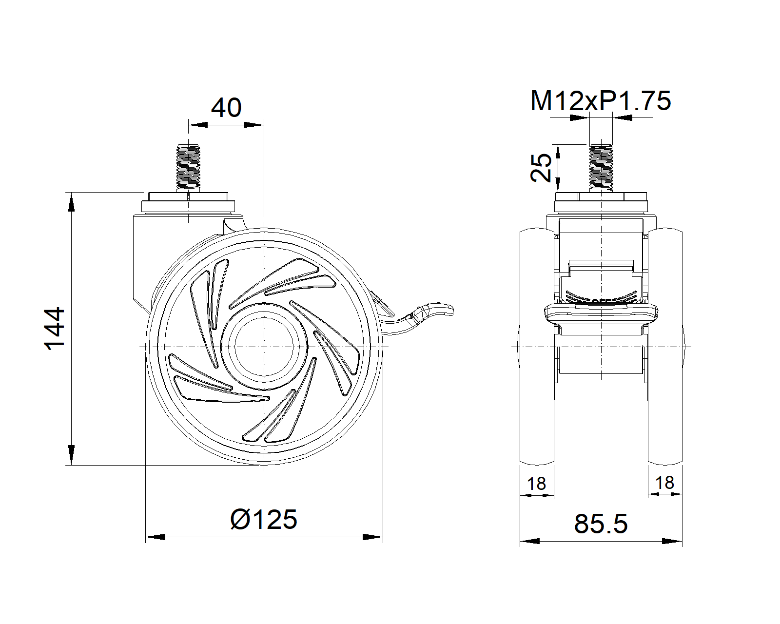 | Resolute Rubber wheel (white dark gray) Wheel Diameter x Wheel Width 125 x 18mm |