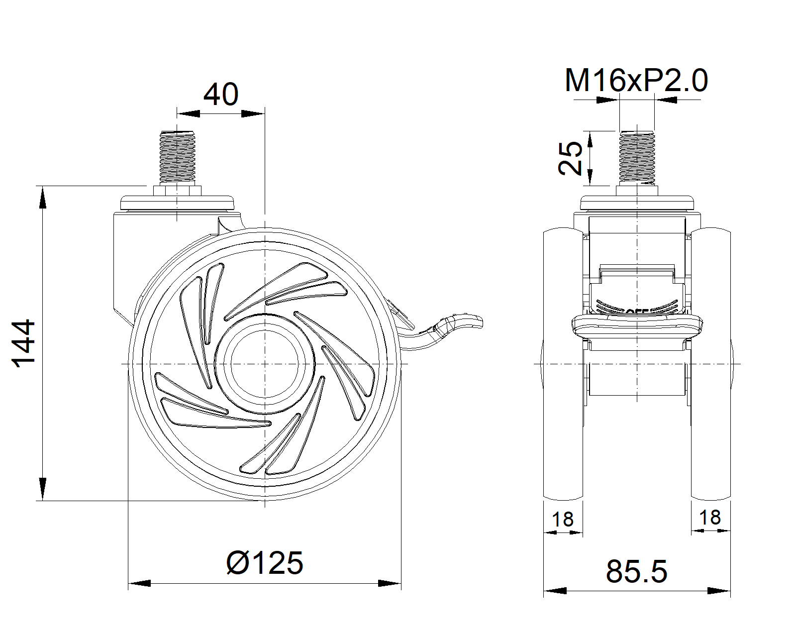 | Resolute Rubber wheel (white dark gray) Wheel Diameter x Wheel Width 125 x 18mm |