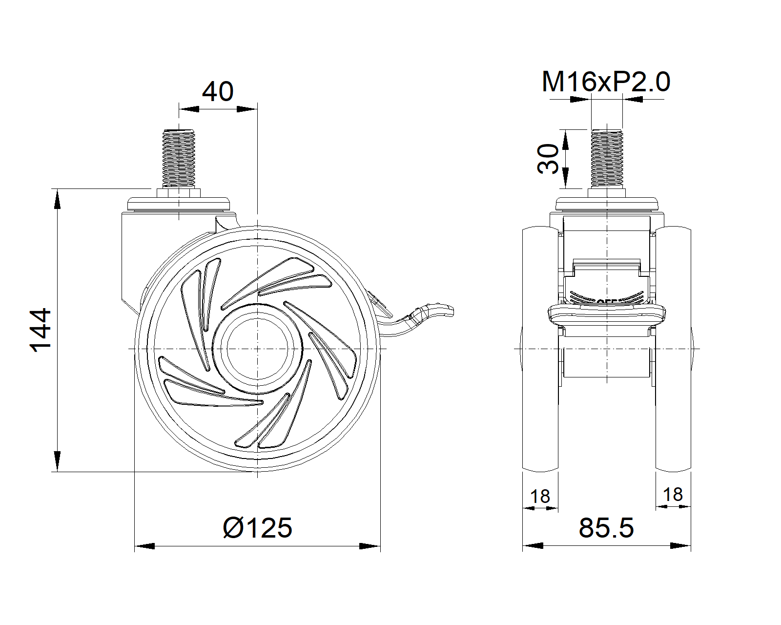 | Resolute Rubber wheel (white dark gray) Wheel Diameter x Wheel Width 125 x 18mm |