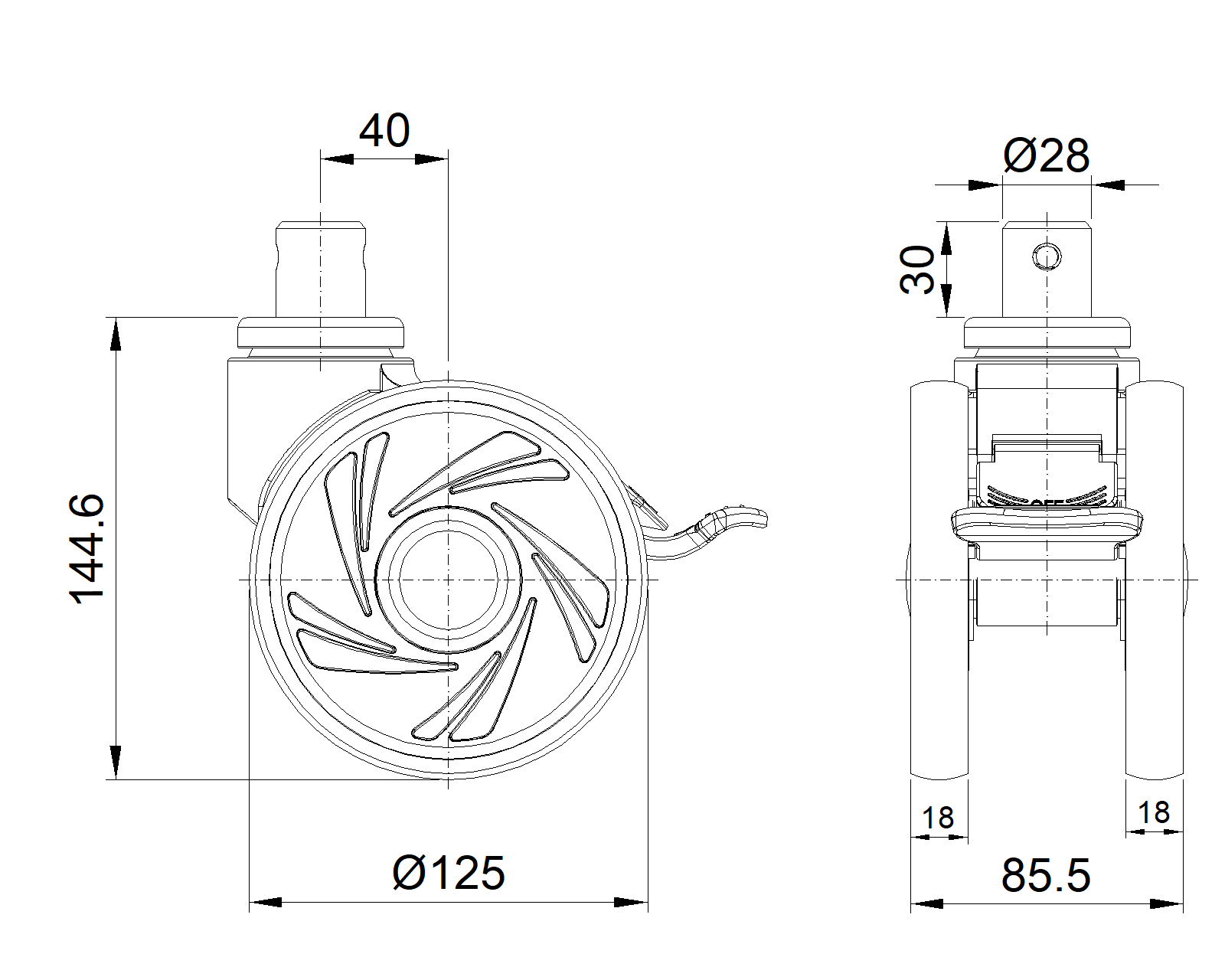 | Wheel tread: Thermoplastic rubber elastomer (TPR) Wheel Center: Made of high-quality impact-resistant polypropylene Drawings are for reference only and may differ from the product |