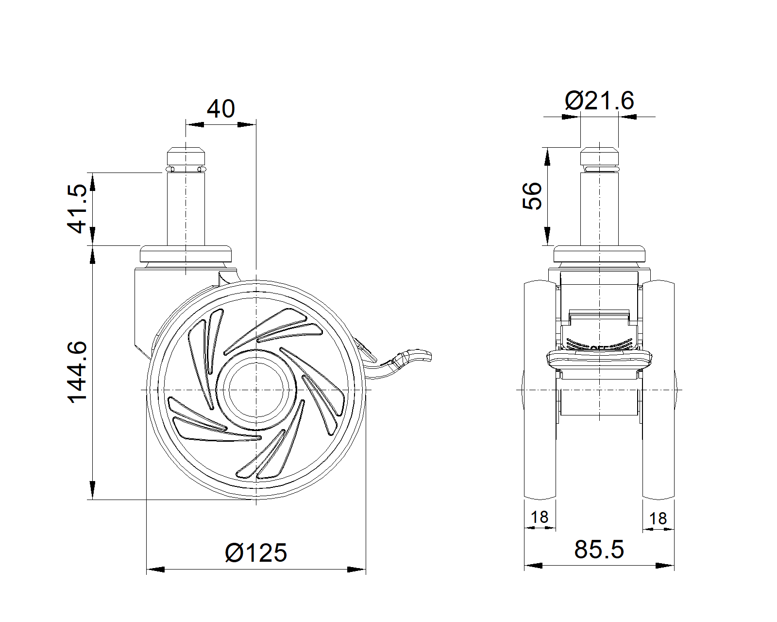 Long Total Brake Casters, mortise-and-tenon Riveted Stamping Fork—Ø21.6x56