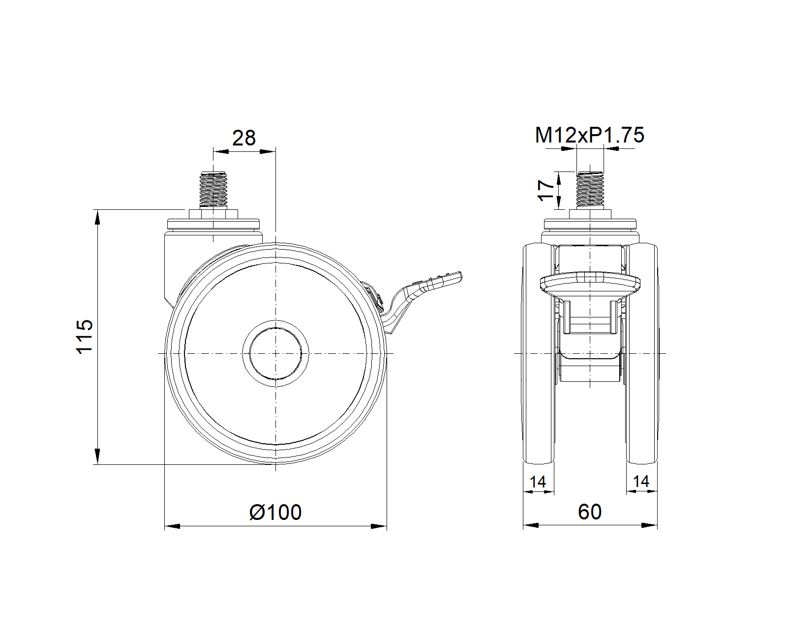 | Resolute Rubber wheel (Window Grey Dark Grey) Wheel Diameter x Wheel Width 100 x 14mm |
