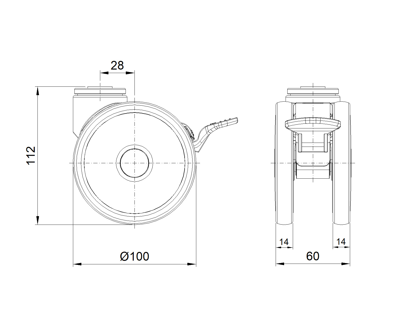 | Resolute Rubber wheel (Window Grey Dark Grey) Wheel Diameter x Wheel Width 100 x 14mm |