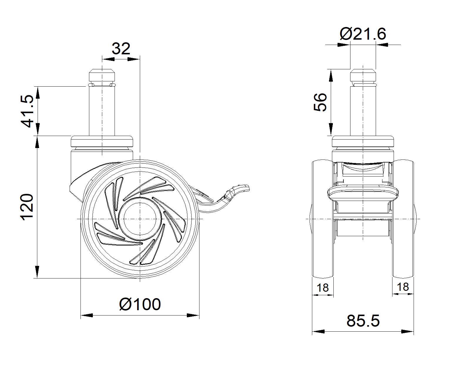 Long Total Brake Casters, mortise-and-tenon Stamping Fork—Ø21.6x56L