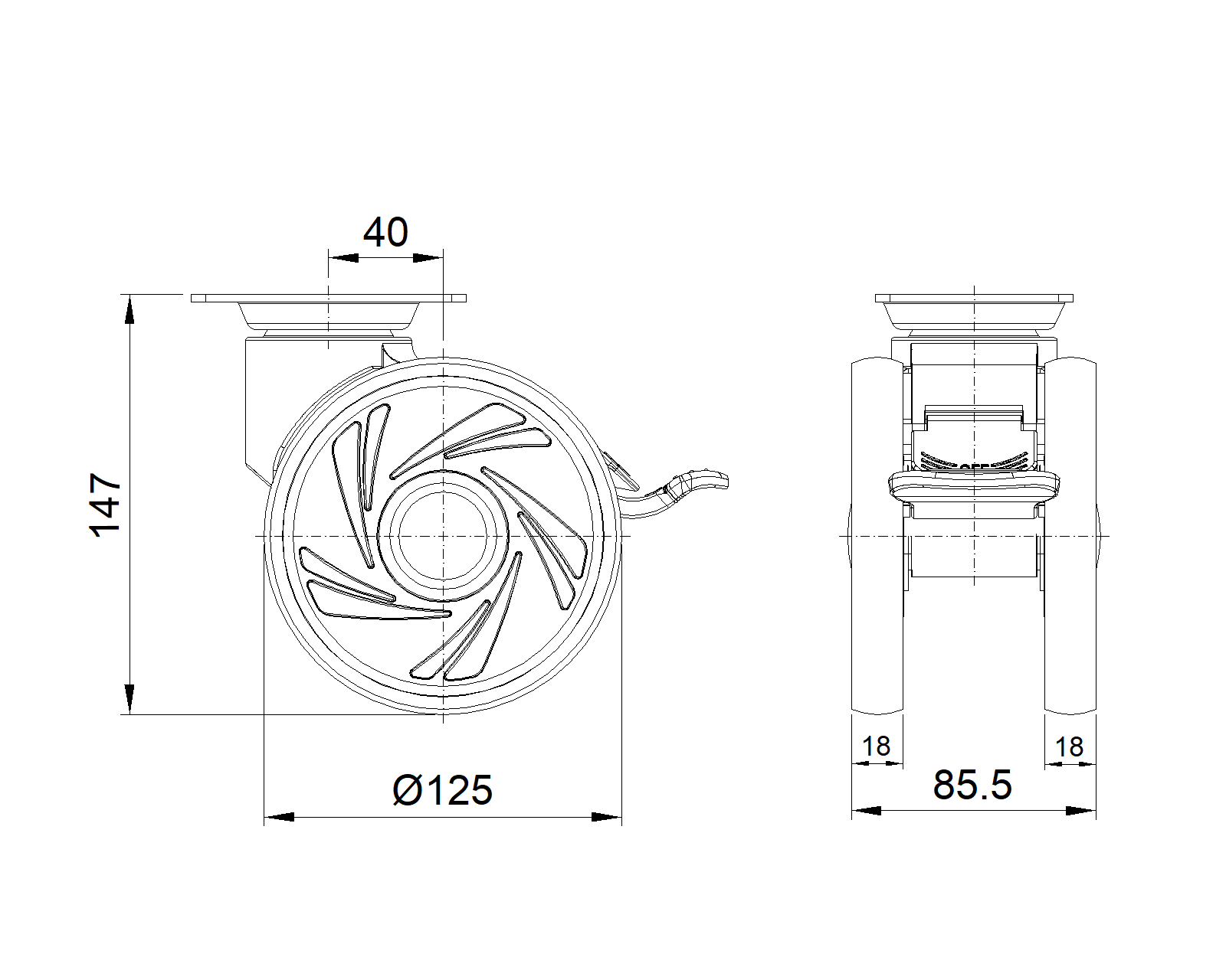 | Resolute Rubber wheel (window gray dark gray) Wheel Diameter x Wheel Width 125 x 18mm |