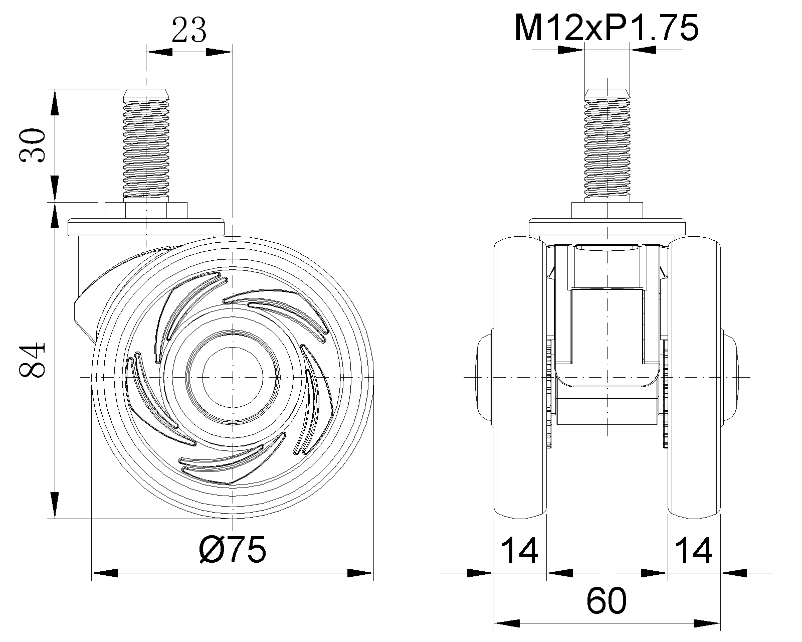 | Resolute Rubber wheel (all black) Wheel Diameter x Wheel Width 75 x 14mm |
