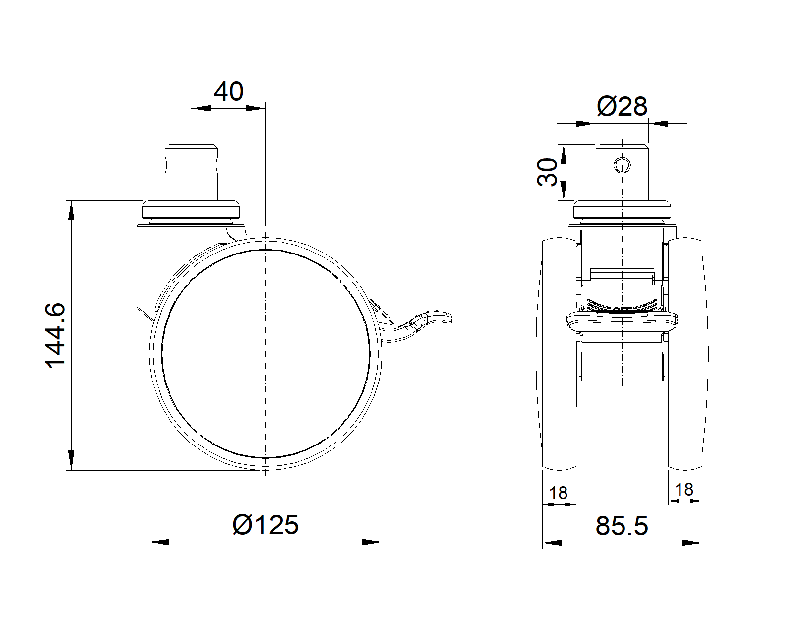 | Wheel tread: Thermoplastic rubber elastomer (TPR) Wheel Center: Made of high-quality impact-resistant polypropylene Drawings are for reference only and may differ from the product |