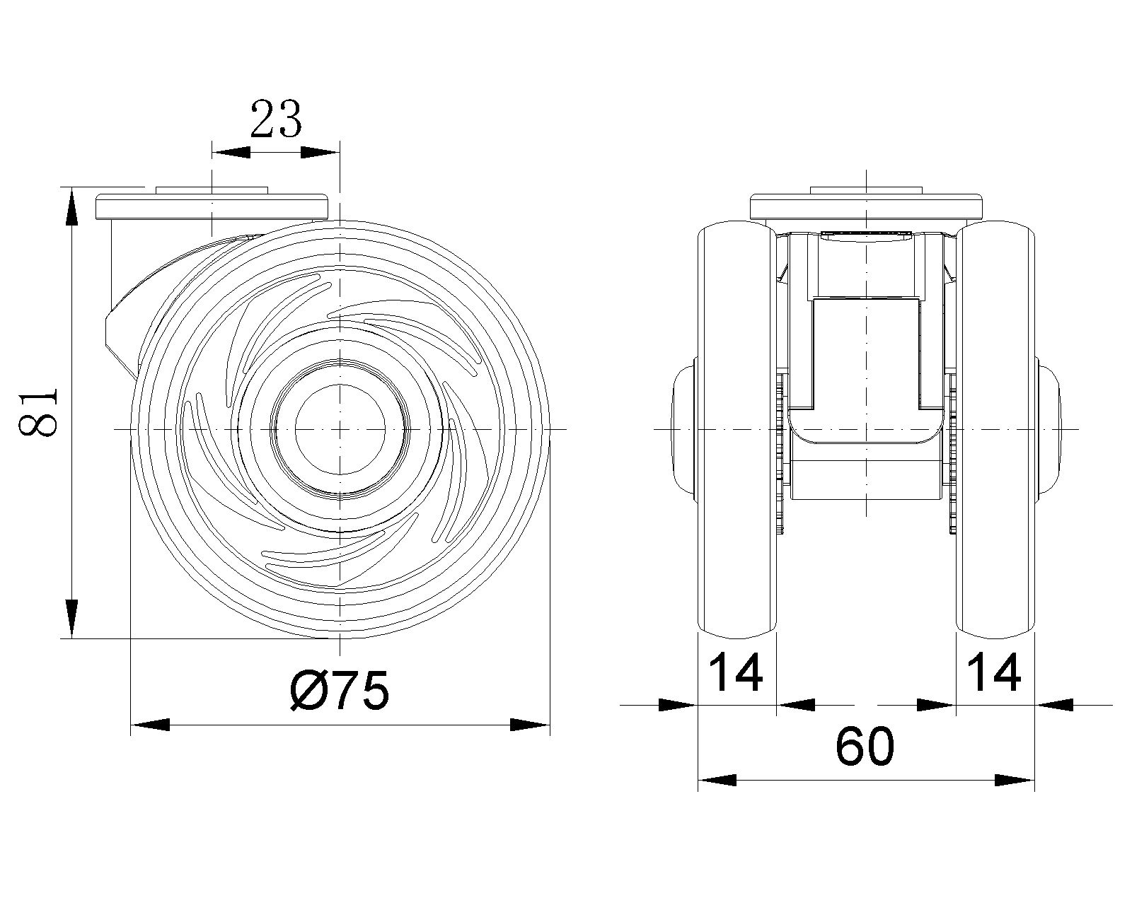 | Resolute Rubber wheel (all black) Wheel Diameter x Wheel Width 75 x 14mm |