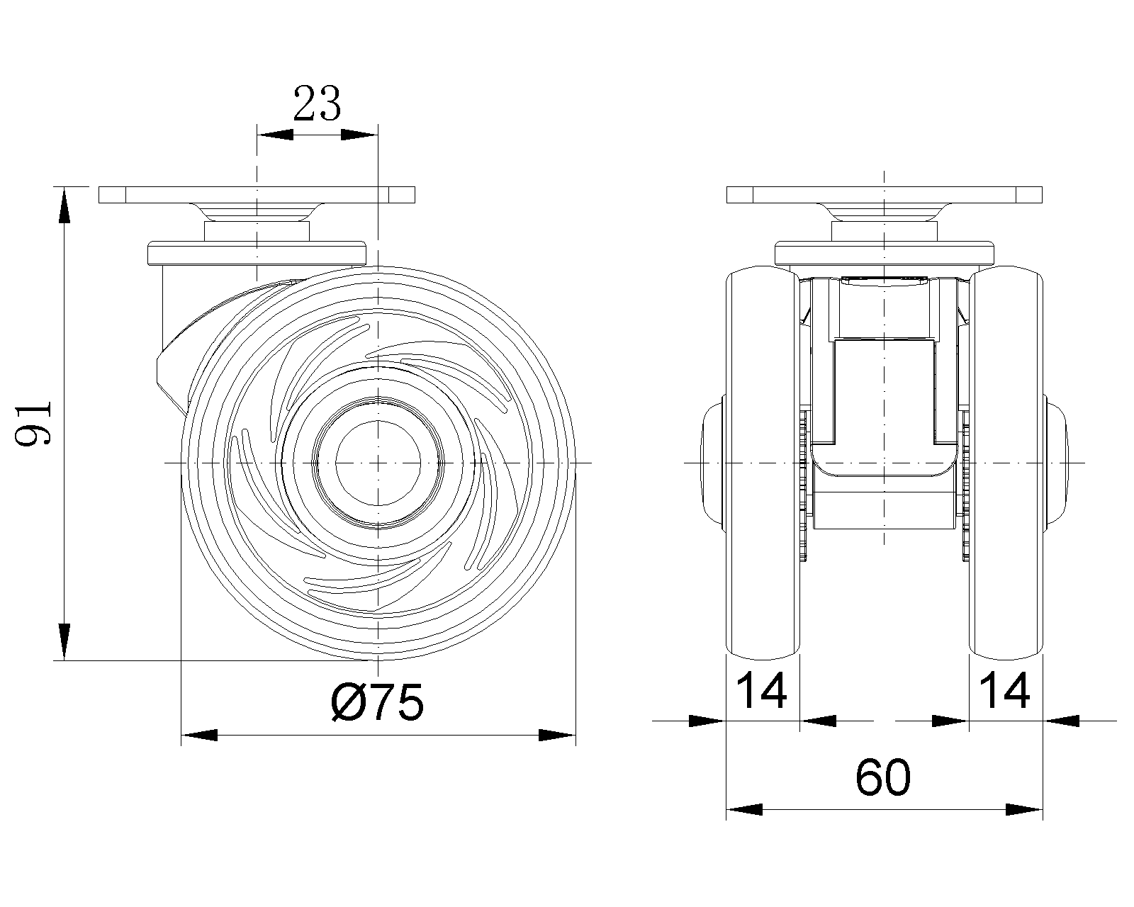 | Resolute Rubber wheel (all black) Wheel Diameter x Wheel Width 75 x 14mm |