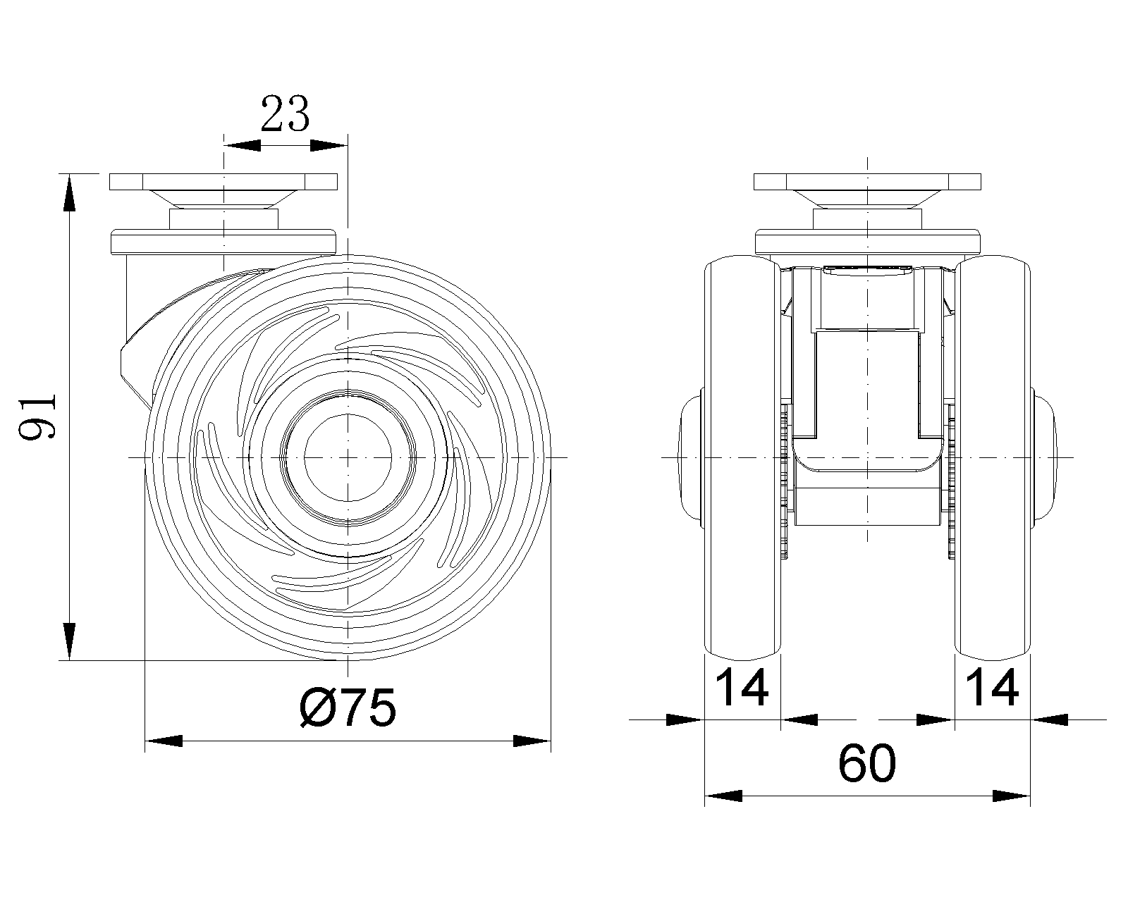 | Resolute Rubber wheel (all black) Wheel Diameter x Wheel Width 75 x 14mm |