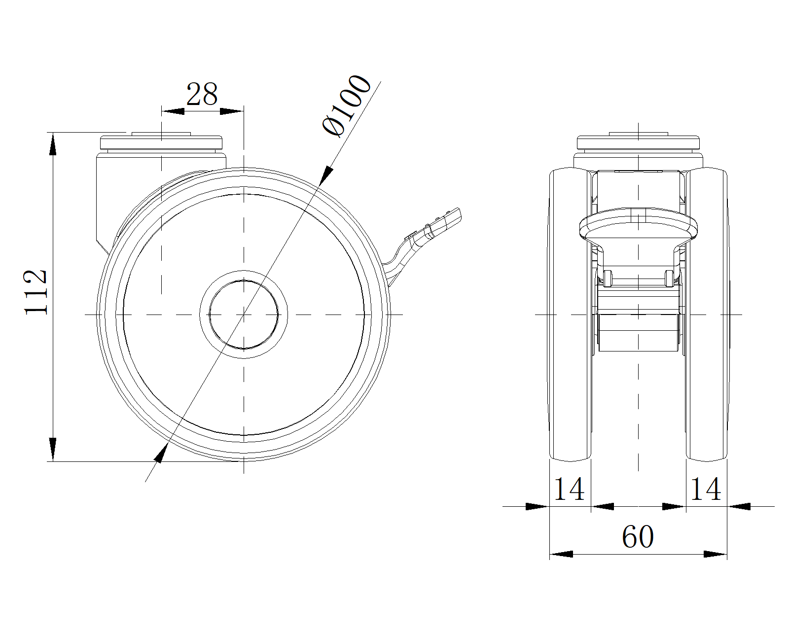 | Wheel tread: Thermoplastic rubber elastomer (TPR) Wheel Center: Made of high-quality impact-resistant polypropylene Drawings are for reference only and may differ from the product |