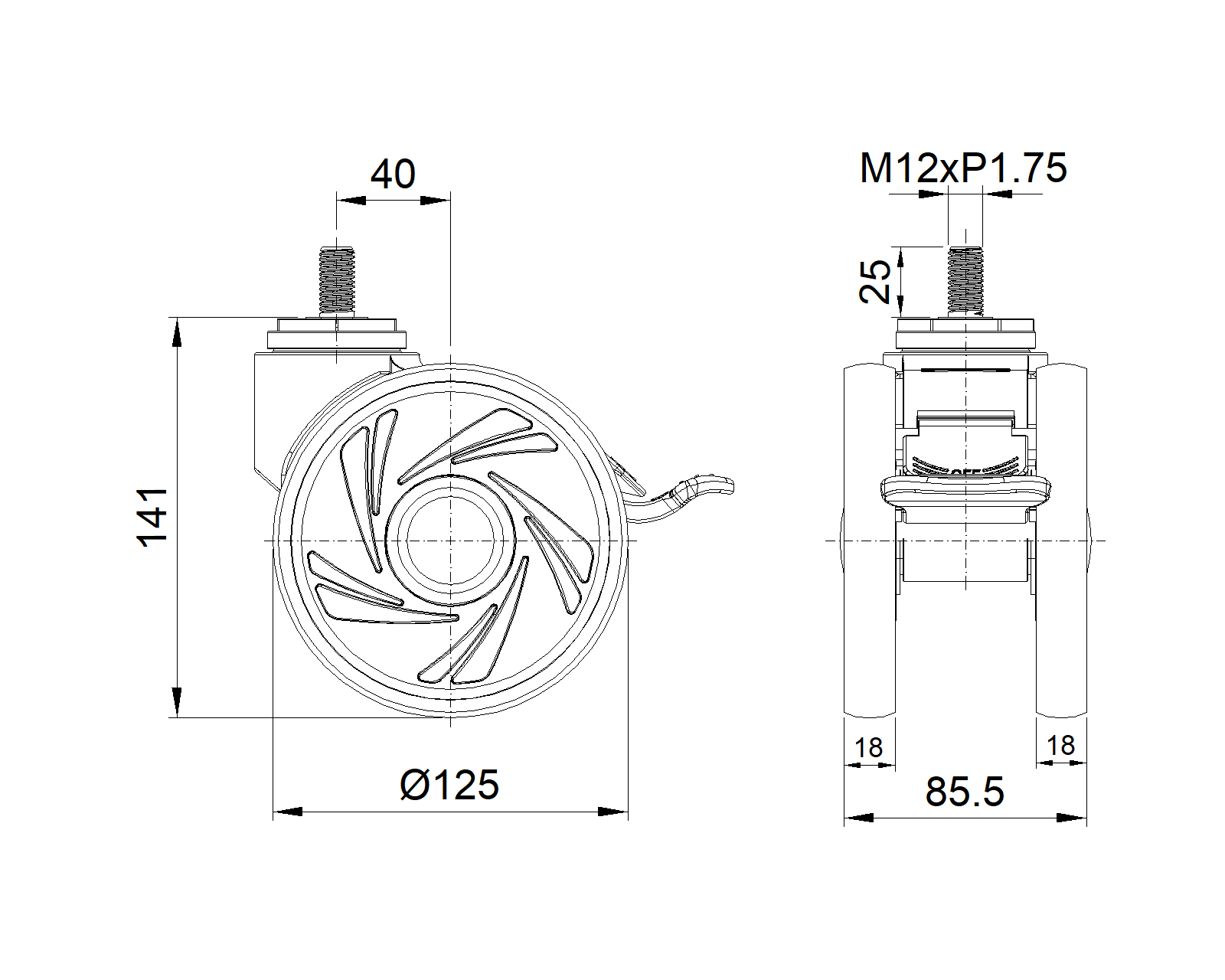 | Resolute Rubber wheel (white dark gray) Wheel Diameter x Wheel Width 125 x 18mm |