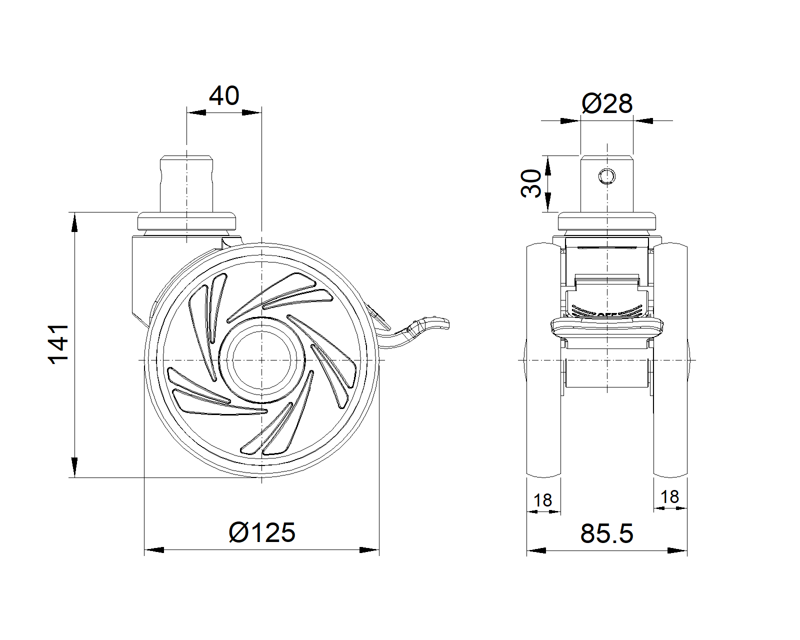 | Resolute Rubber wheel (white dark gray) Wheel Diameter x Wheel Width 125 x 18mm |