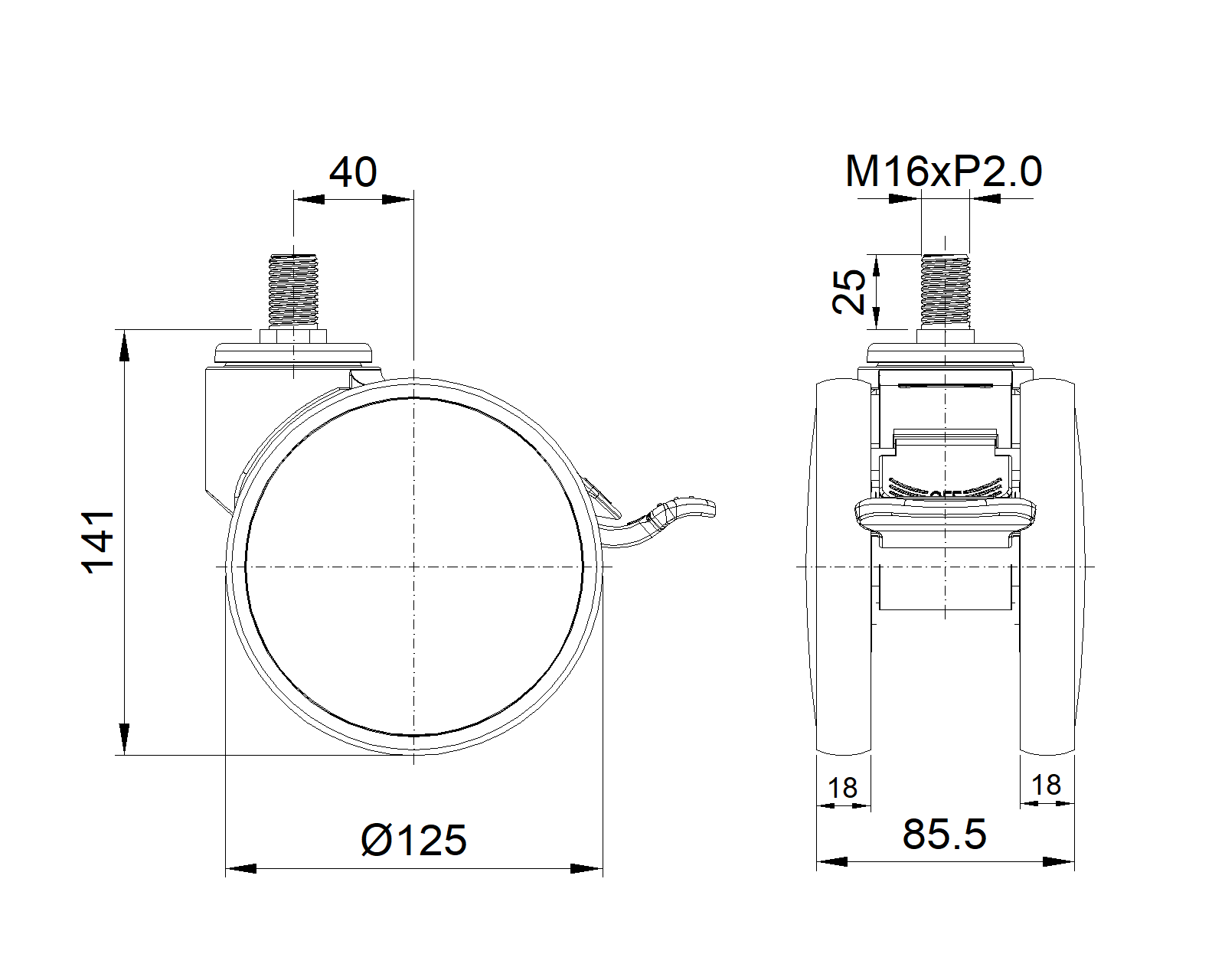 | Resolute Rubber wheel (white dark gray - large cover version) Wheel Diameter x Wheel Width 125 x 18 |