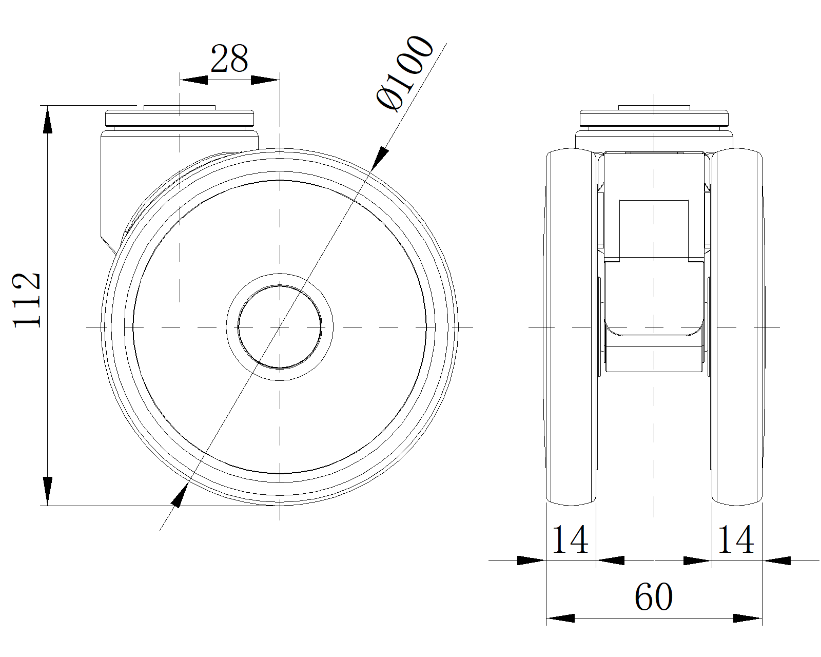 | Wheel tread: Thermoplastic rubber elastomer (TPR) Wheel Center: Made of high-quality impact-resistant polypropylene Drawings are for reference only and may differ from the product |