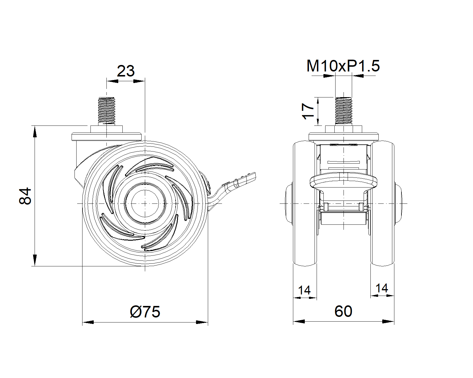 | Resolute Rubber wheel (all black) Wheel Diameter x Wheel Width 75 x 14mm |