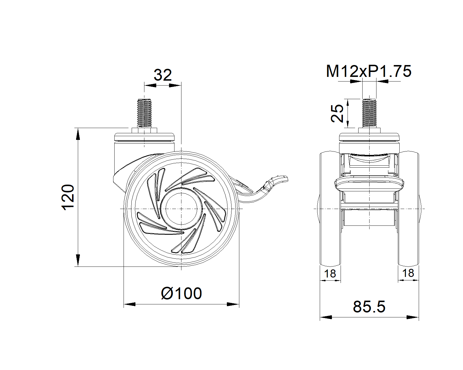 | Resolute Rubber wheel (Trắng Đen Xám) Đường kính bánh xe × Chiều rộng bánh xe 100 x 18mm |