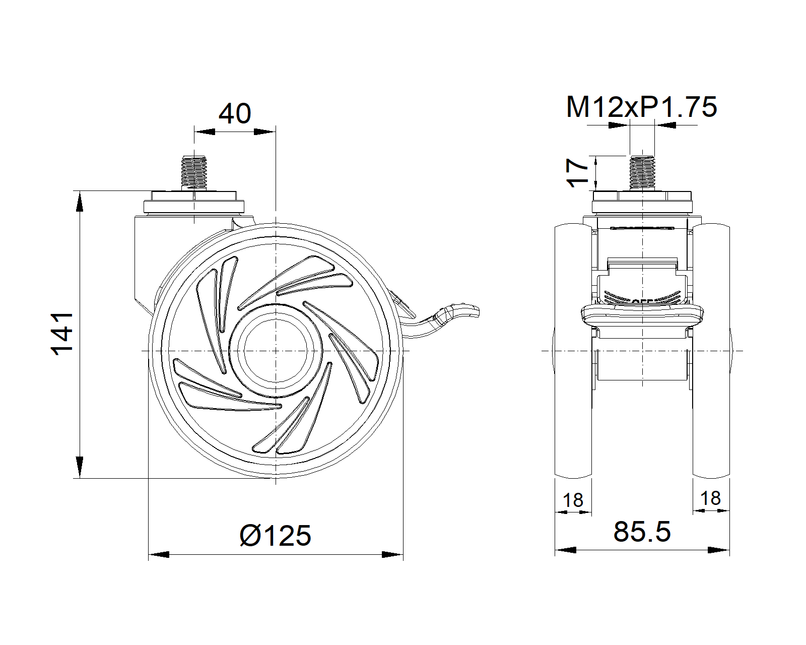 | Resolute Rubber wheel (Trắng Đen Xám) Đường kính bánh xe × Chiều rộng bánh xe 125 x 18mm |
