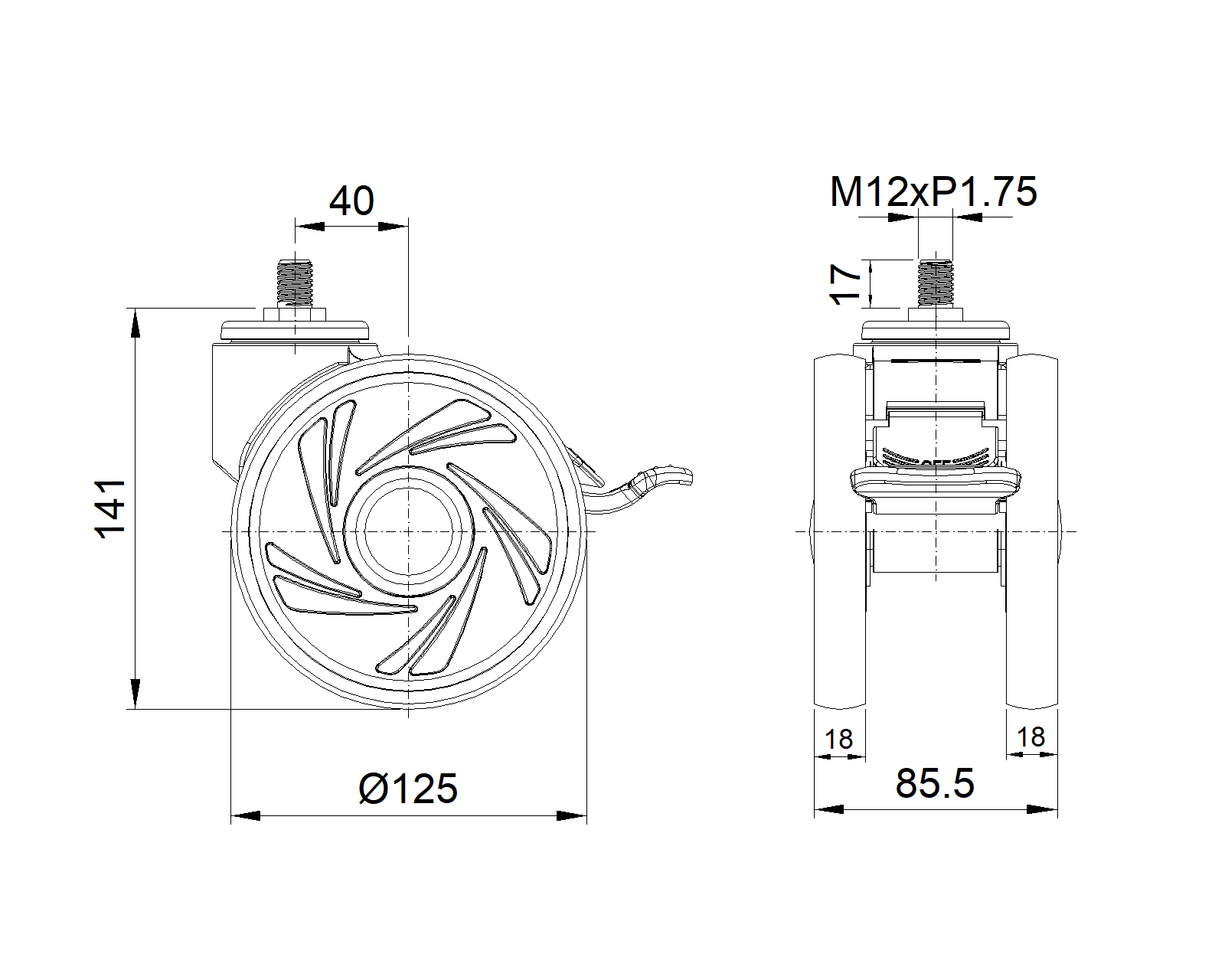 | Resolute Rubber wheel (Trắng Đen Xám) Đường kính bánh xe × Chiều rộng bánh xe 125 x 18mm |