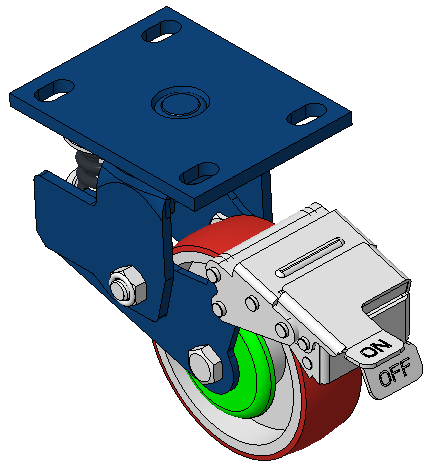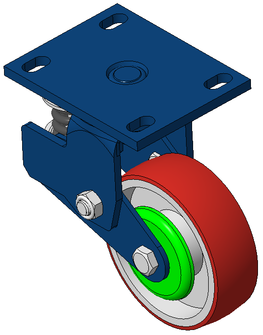 | Rigid Spring-loaded Caster with Welded Caster Fork Blue painted finish, Mounting Type - Top Plate, 110x75 Bolt Hole Spacing Cast Iron core with High Quality Polyurethane Wheel Tread Red Cast Iron finish, Bearing – Ball Bearings |