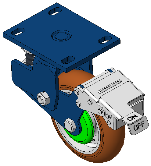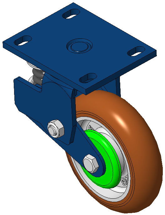 | Rigid Spring-loaded Caster with Welded Caster Fork Blue painted finish, Mounting Type - Top Plate, 110x75 Bolt Hole Spacing Cast Iron core with High Quality Polyurethane Wheel Tread Cast Iron brown, Bearing – Ball Bearings |