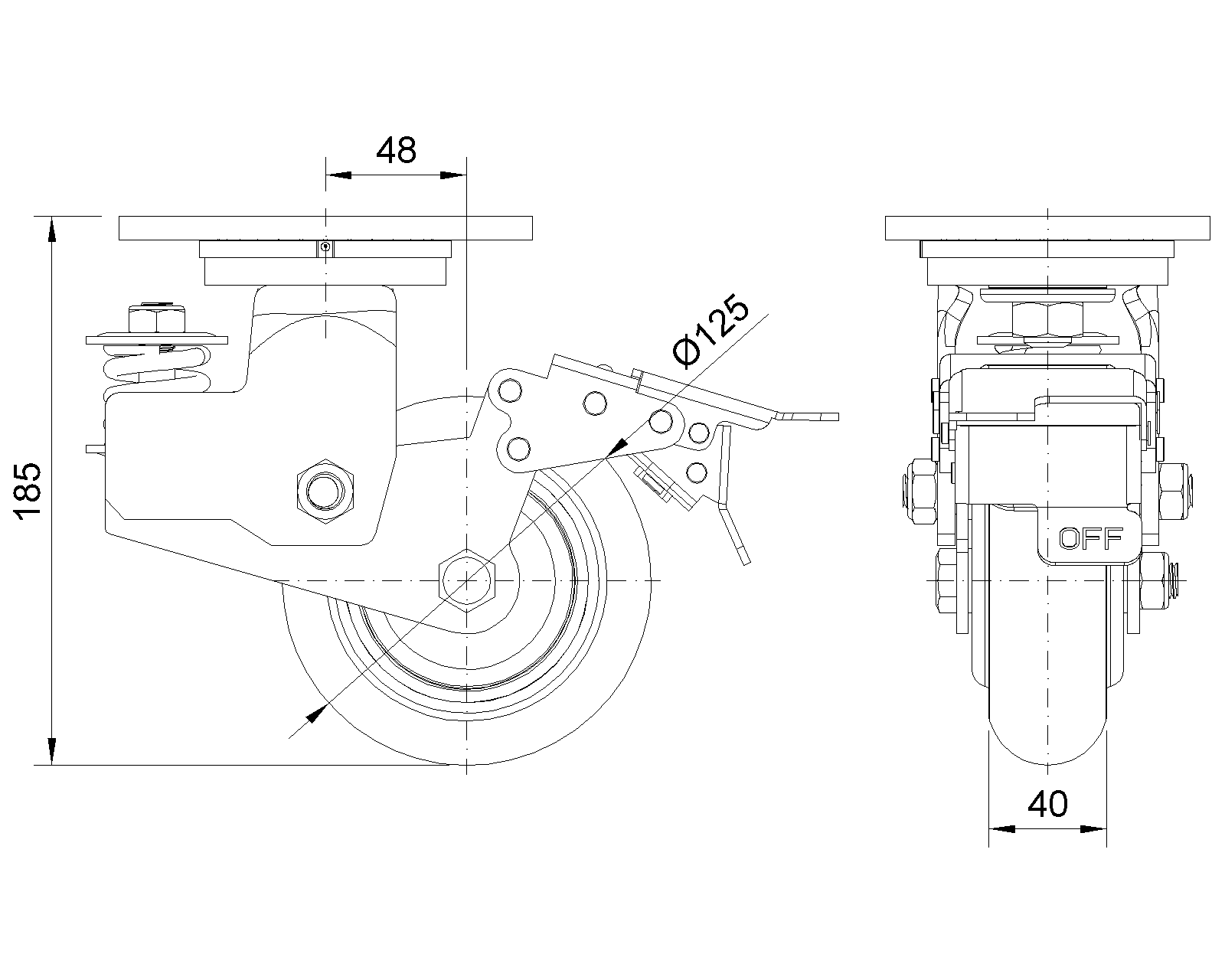 | EQPU (brown round) Wheel Diameter x Wheel Width 125 x 40mm |