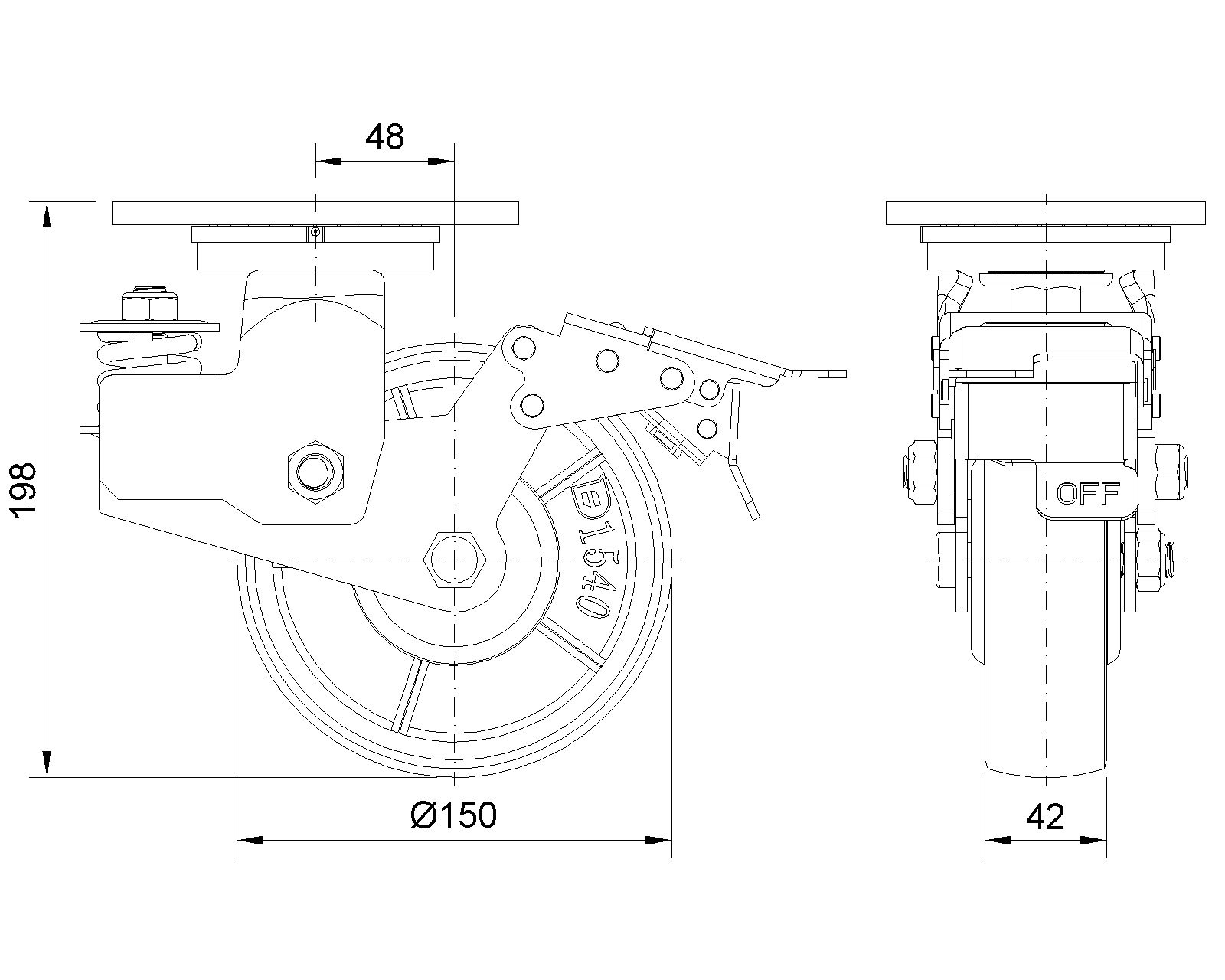 | Wheel tread: Made of high-quality polyurethane Wheel Center: iron core/cast iron core Drawings are for reference only and may differ from the product |