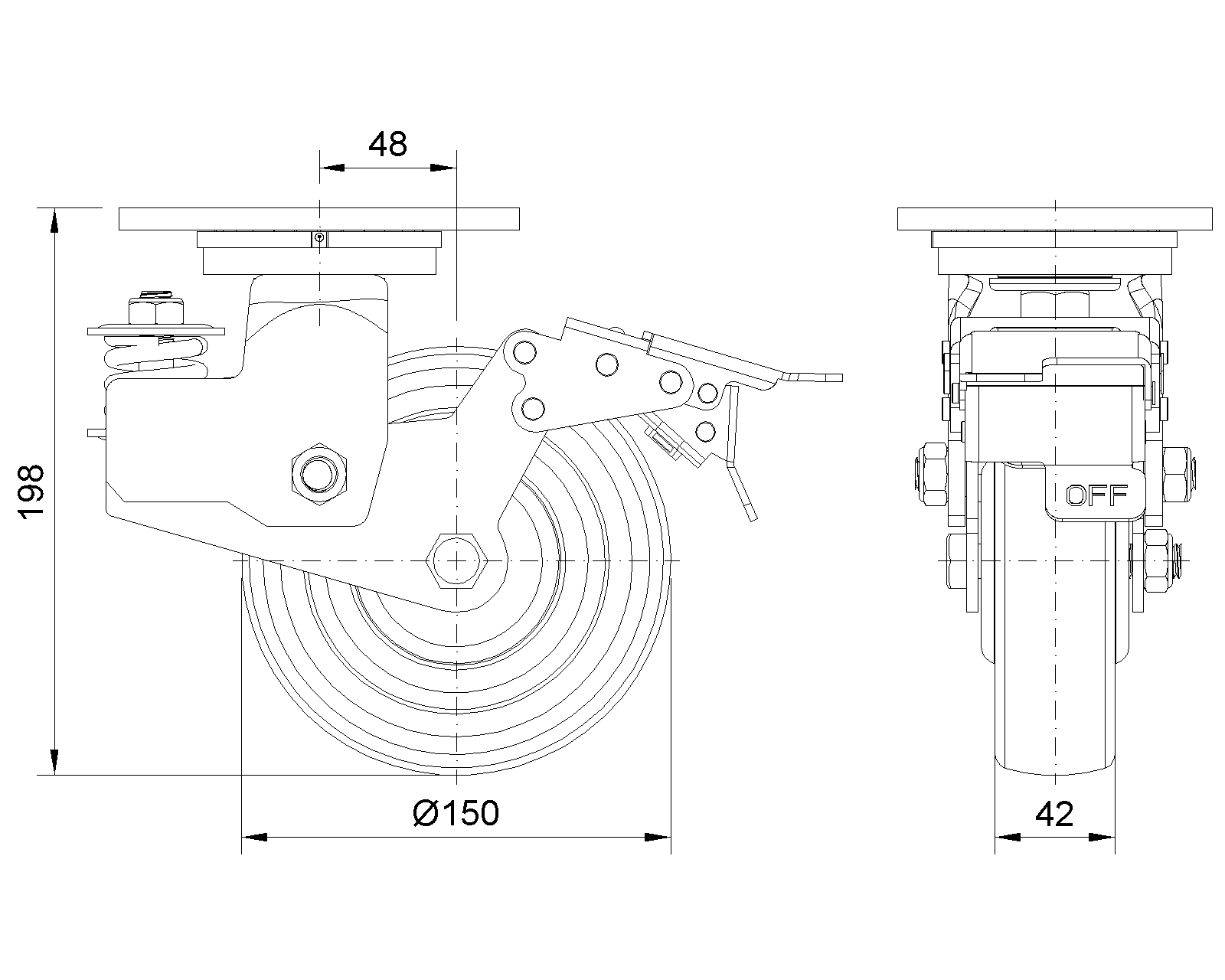 | VQPU (brown round) Wheel Diameter x Wheel Width 150 x 42mm |