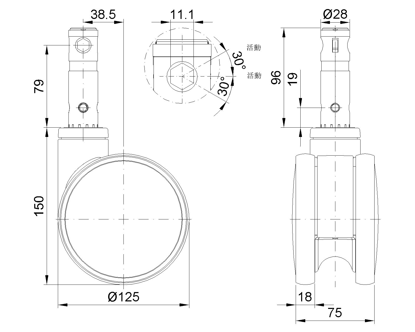 | TPR wheel (white dark gray) Wheel Diameter x Wheel Width 125 x 18mm |