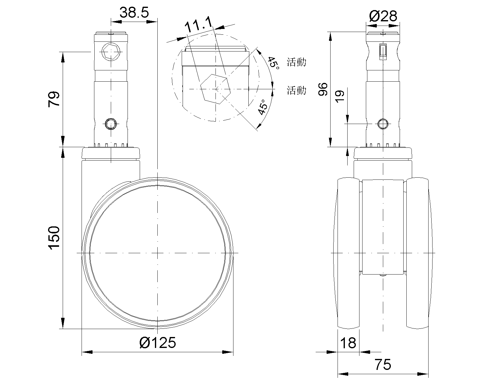 | TPR wheel (white dark gray) Wheel Diameter x Wheel Width 125 x 18mm |