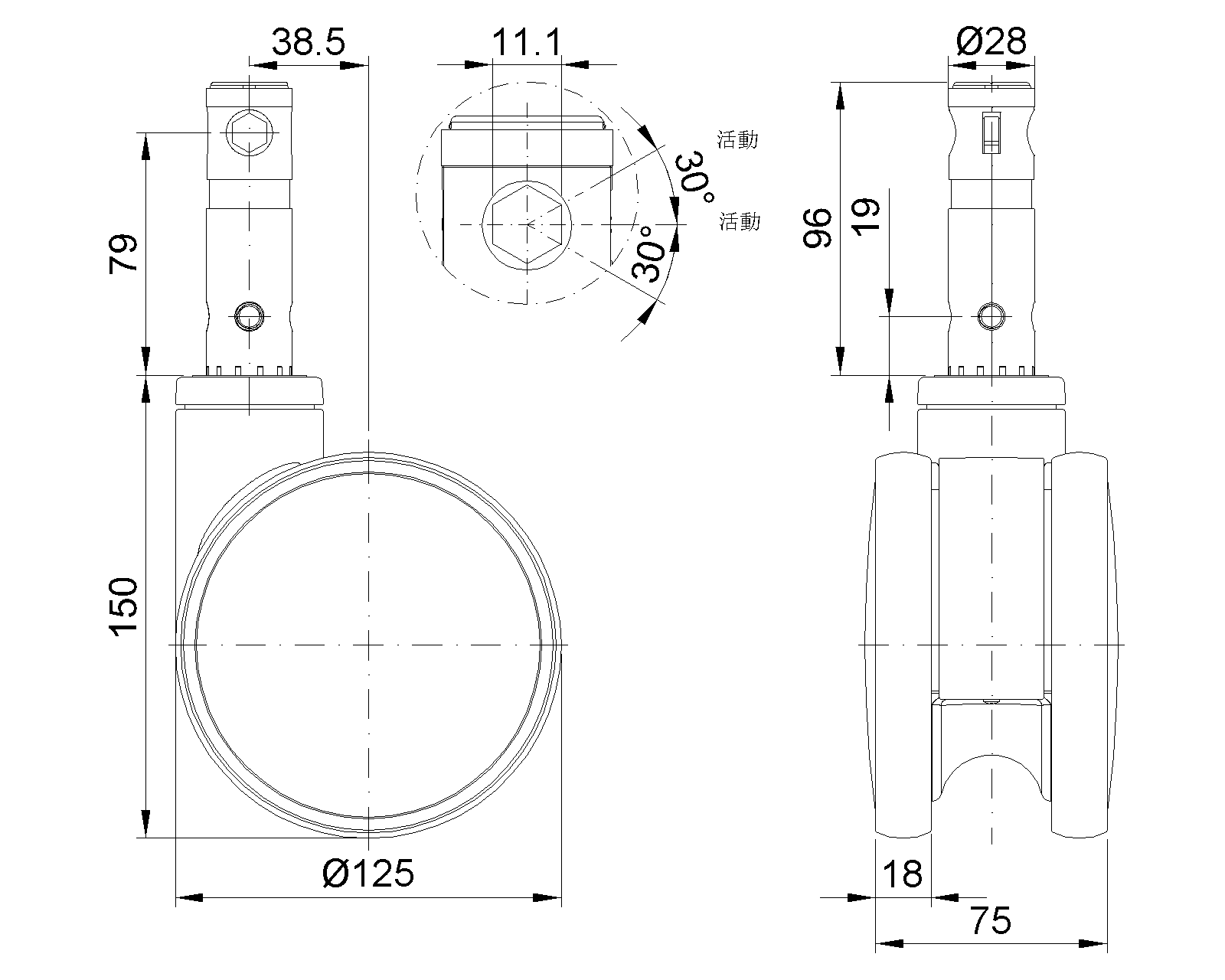 Resolute Rubber wheel (white dark gray) Wheel Diameter x Wheel Width 125 x 18mm |