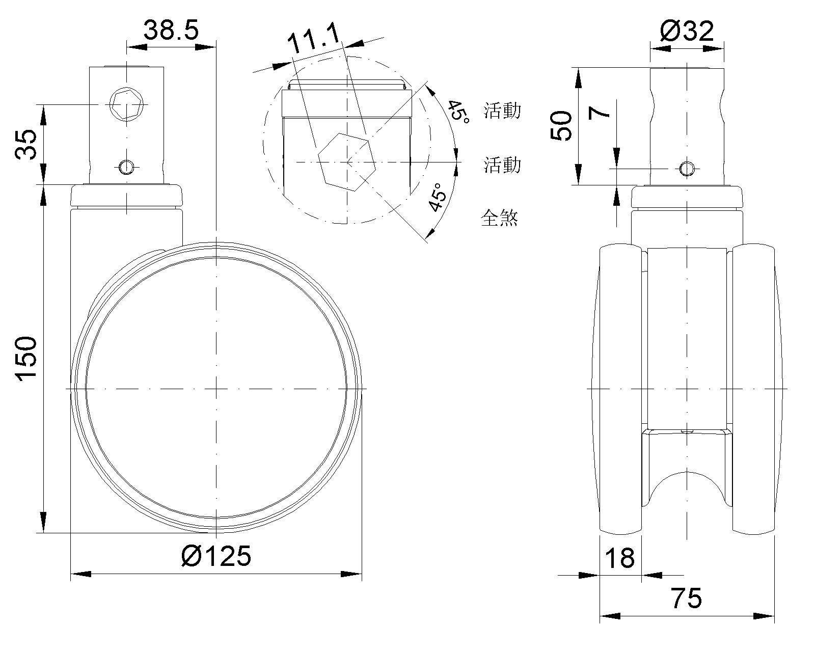 | Wheel tread: Thermoplastic rubber elastomer (TPR) Wheel Center: Made of high-quality impact-resistant polypropylene Drawings are for reference only and may differ from the product |