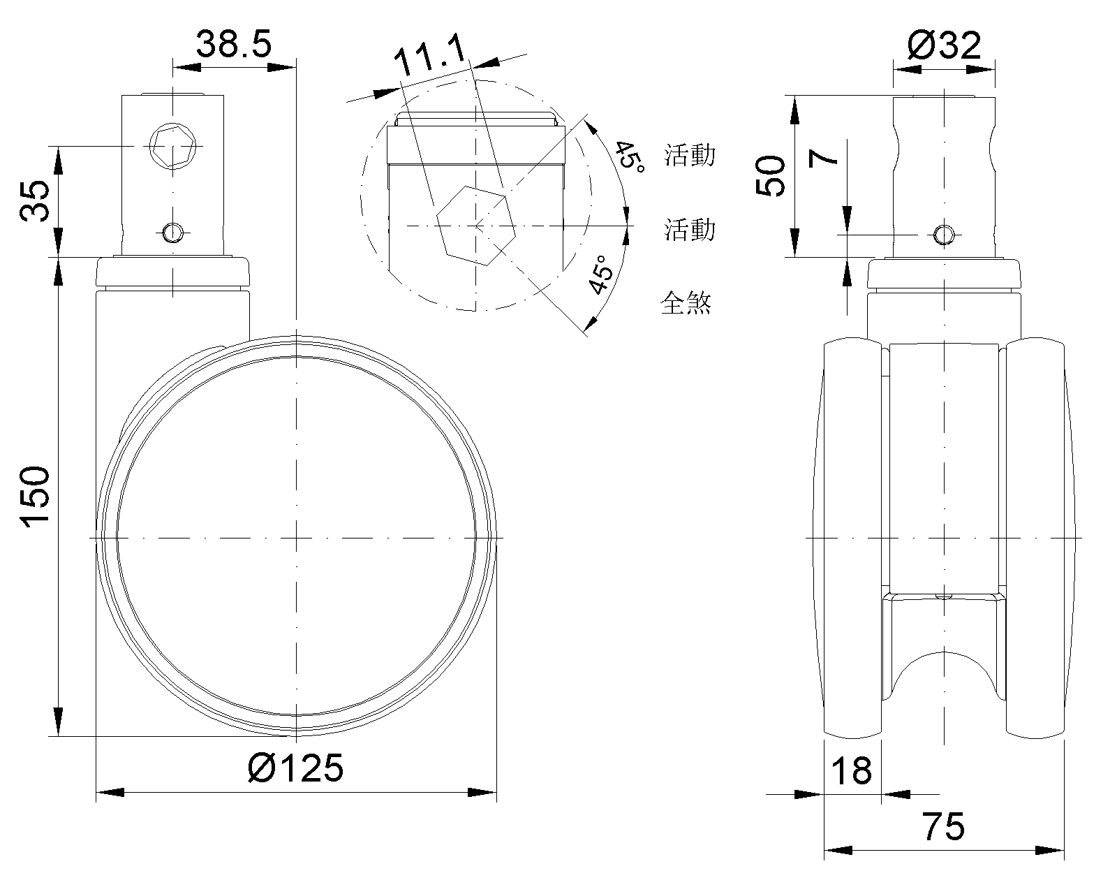 | Wheel tread: Thermoplastic rubber elastomer (TPR) Wheel Center: Made of high-quality impact-resistant polypropylene Drawings are for reference only and may differ from the product |