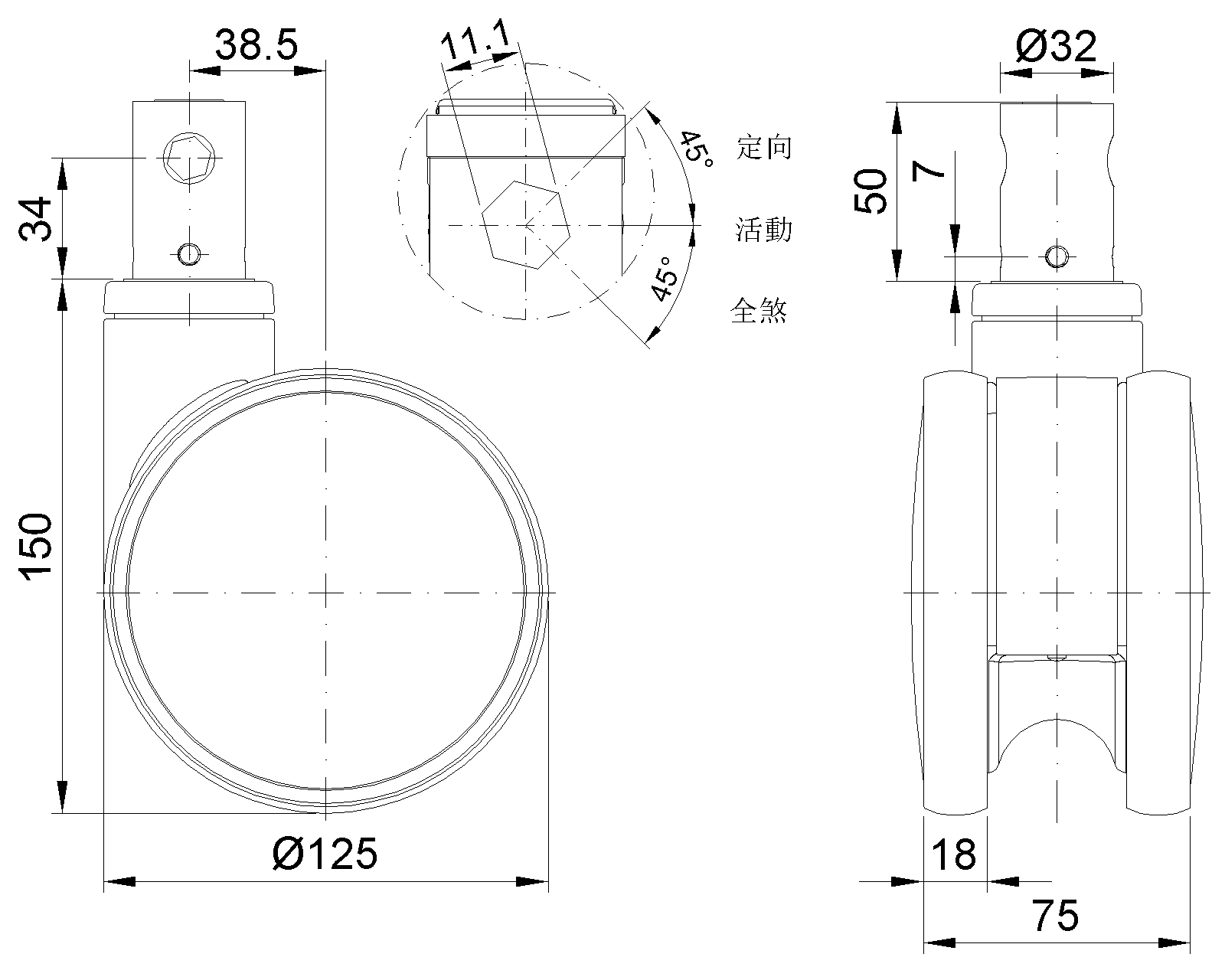 Short lever, Hexagonal hole cam control, center-locked full or directional brake. Casings White Casters, simple and Attractive appearance, Smooth rotation. High-Quality Impact-Resistant Polypropylene Wheel Center, High-Quality Reinforced Polypropylene Rubber (TPR) Wheel Tread. Dark gray, Bearing—Ball Bearings. |