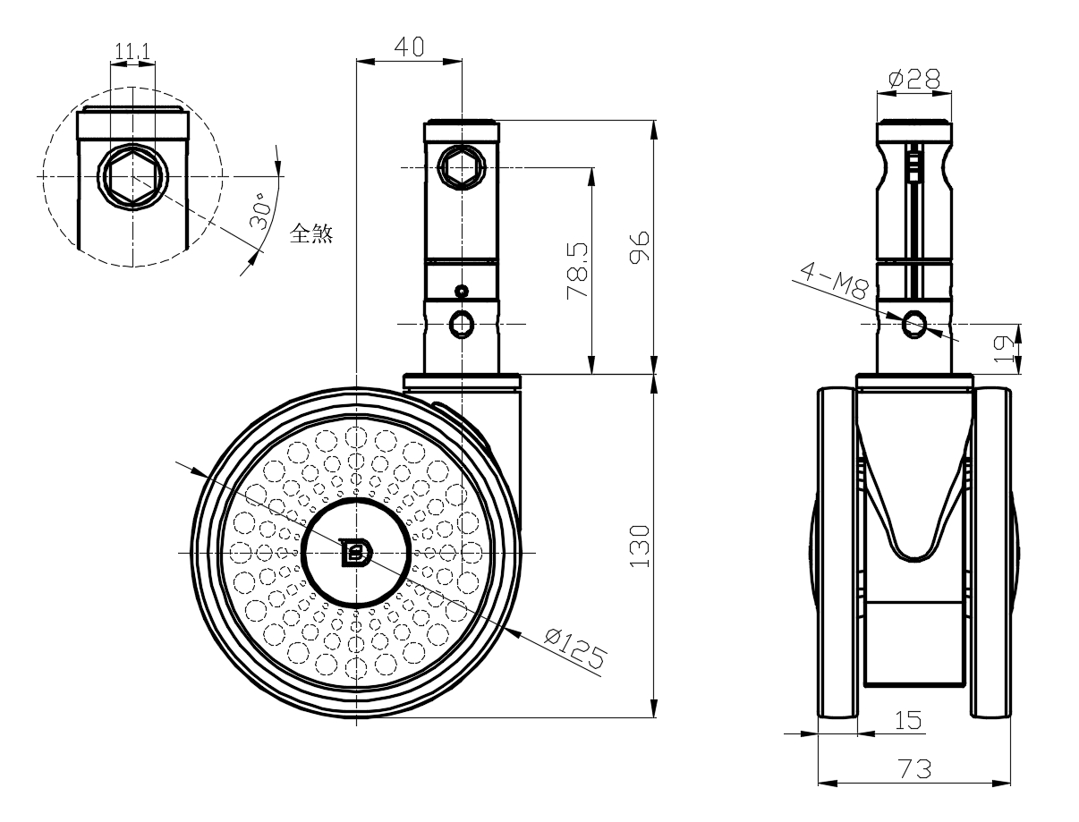 | Wheel tread: Thermoplastic rubber elastomer (TPR) Wheel Center: Made of high-quality impact-resistant polypropylene Drawings are for reference only and may differ from the product |