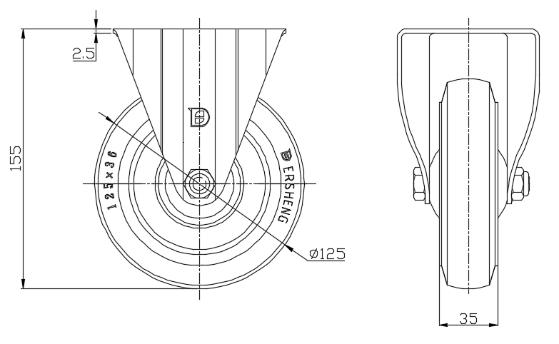 | 固定式脚轮,一体成型冲压脚架—欧规孔