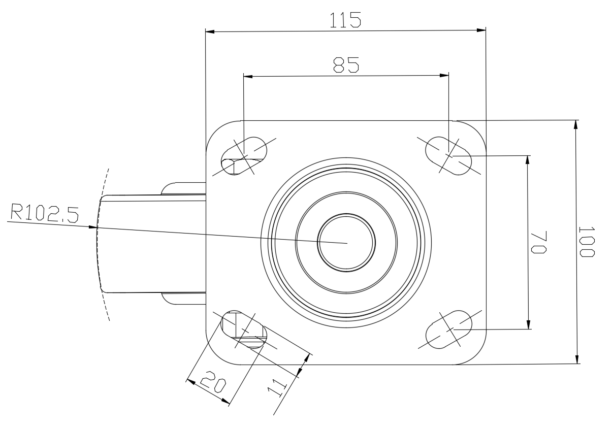 | 活动式脚轮,底板铆合冲压脚架 —D 型孔