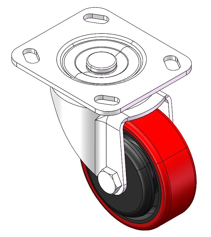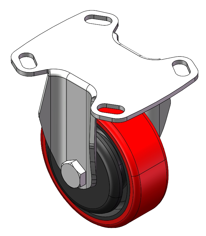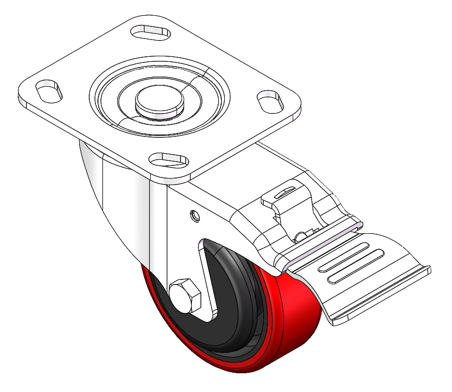 | Casters with Total Brakes and a Locking system. Top Plate Riveted and Stamping. Frame—85 x 70mm (3-3/8" x 2-3/4") Bolt Hole Spacing. Zine-Plated, Mounting Type - Top Plate. Cast Iron Wheel Center with High Quality Polyurethane tread. Red Cast Iron finish. Bearing—Ball Bearing. |