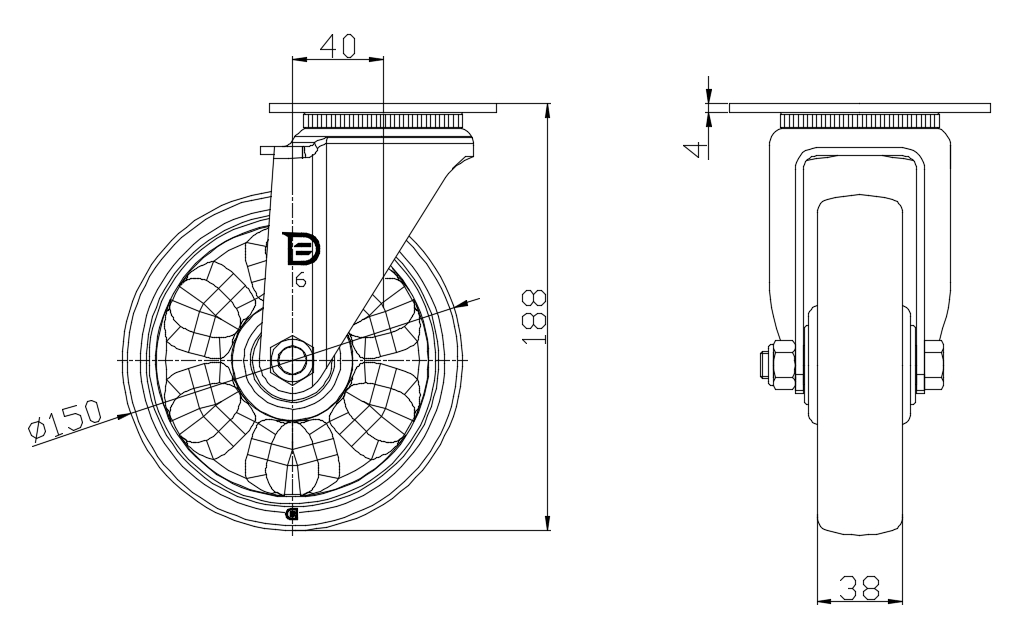 | Wheel tread: Thermoplastic rubber elastomer (TPR) Wheel Center: Made of high-quality impact-resistant polypropylene Drawings are for reference only and may differ from the product |