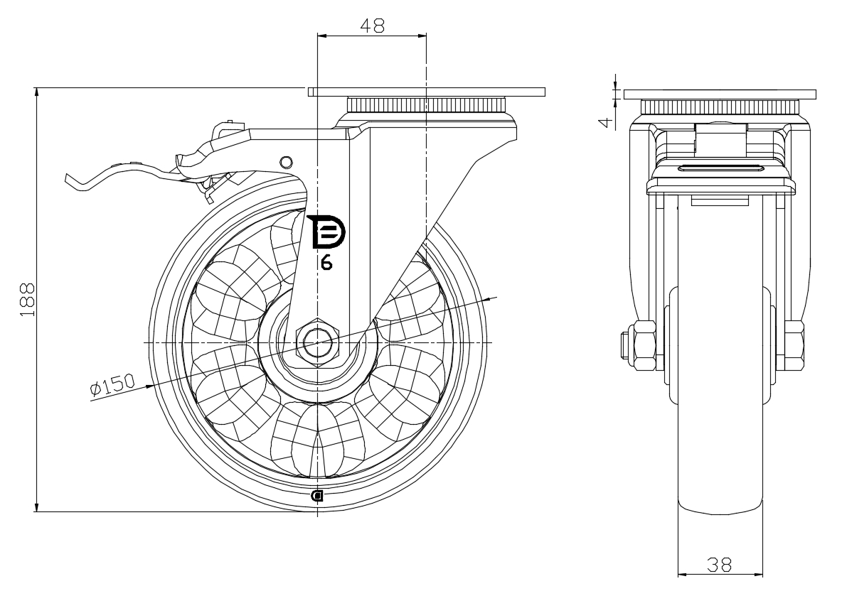 Total Brake locking system. Top Plate Riveted and Stamping 85 x 70mm (3-3/8" x 2-3/4") Bolt Hole Spacing.