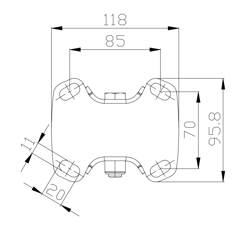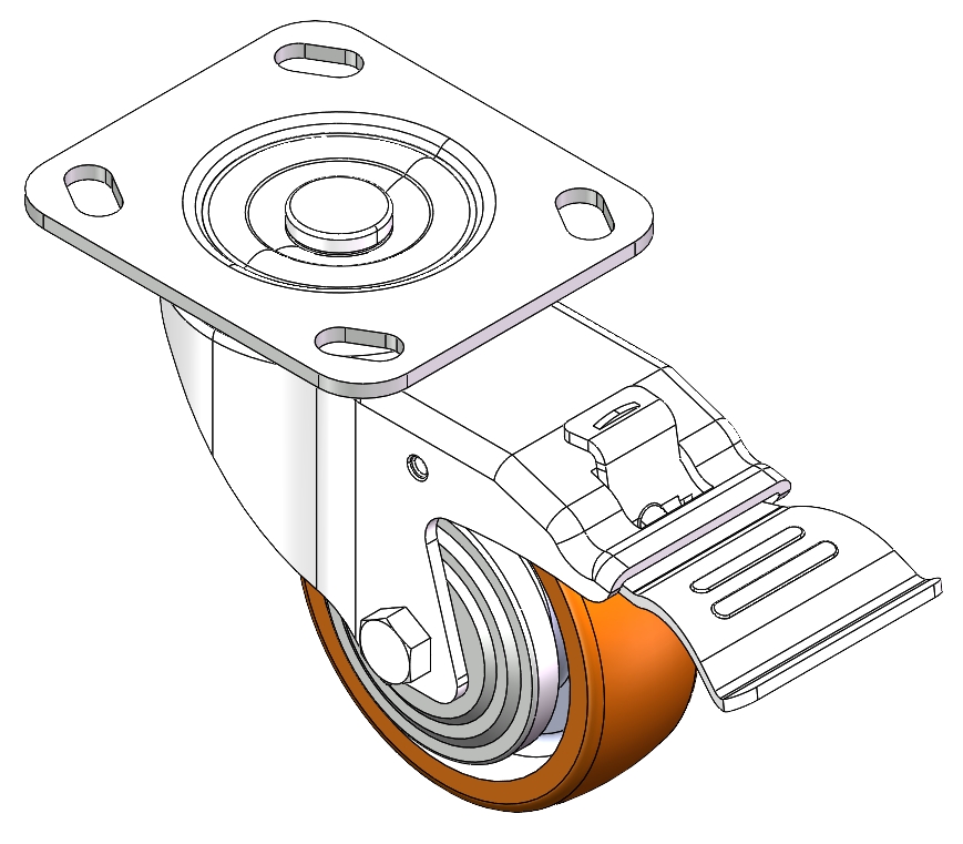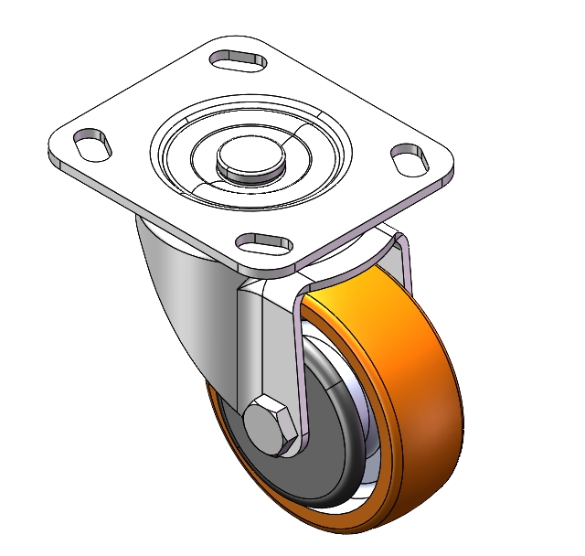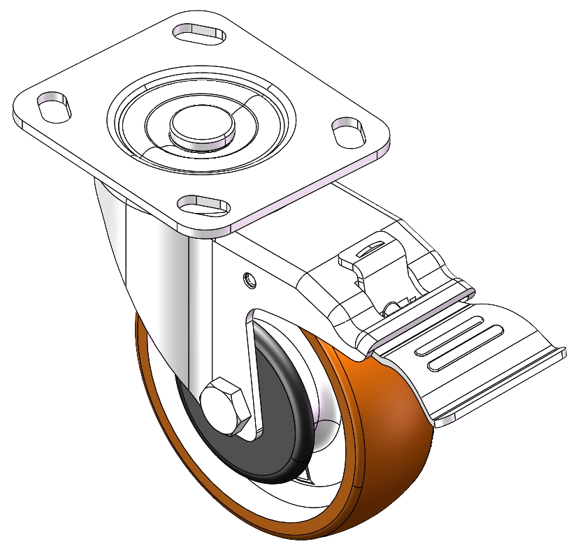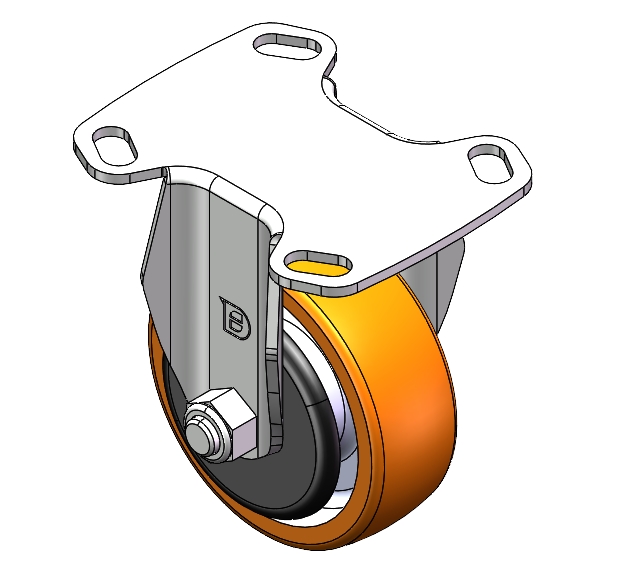 | Rigid Caster with integral Stamping Fork and 85 x 70mm (3-3/8" x 2-3/4") Bolt Hole Spacing. Zine-Plated, Top Platestyle (3.5T) Mounting Type system. Cast Iron Wheel Center with High Quality Polyurethane tread. Brown color, Ball Bearing. |