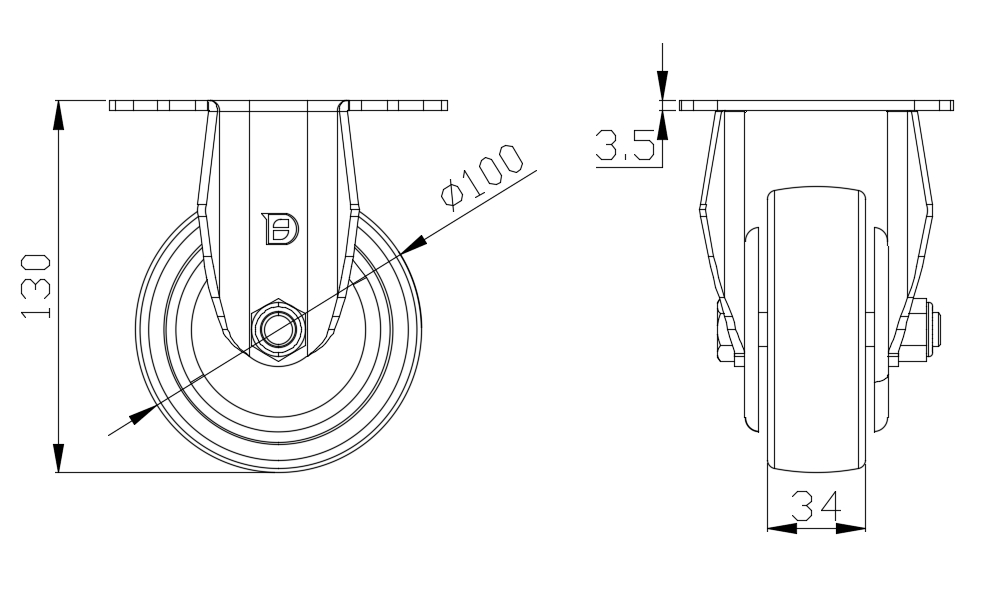 | Wheel tread: Made of high-quality polyurethane Wheel Center: cast iron core Drawings are for reference only and may differ from the product |