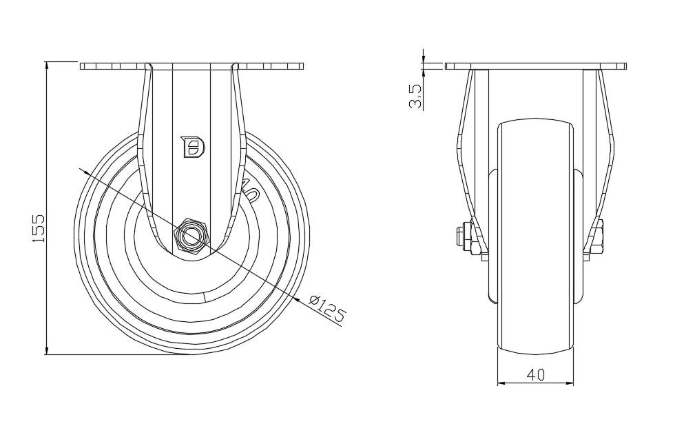 | QPU (Brown round) Wheel Diameter × Wheel Width 125 x 40mm |