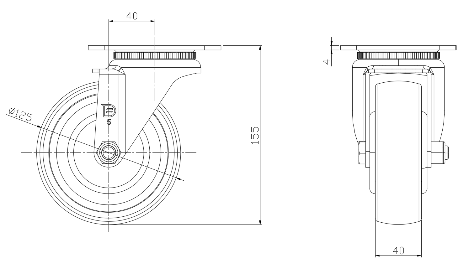 | QPU (Brown round) Wheel Diameter × Wheel Width 125 x 40mm |