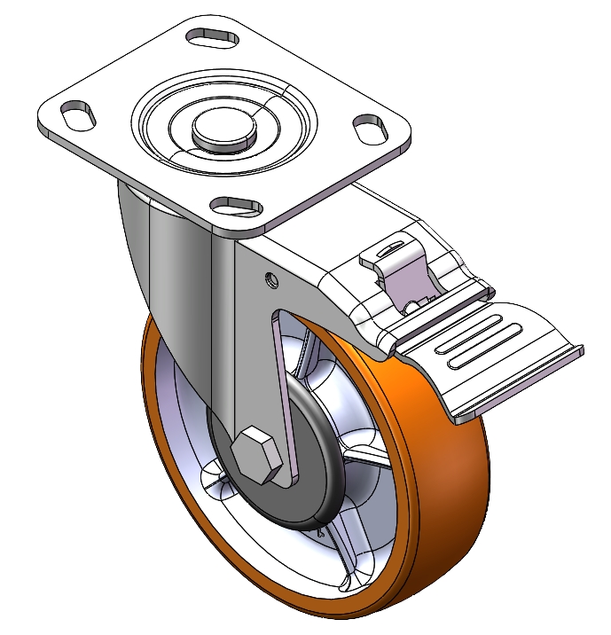| Casters with Total Brakes and a Locking system. Top Plate Riveted and Stamping 85 x 70mm (3-3/8" x 2-3/4") Bolt Hole Spacing. E-Coat Finish, Top Plate (4T) Mounting Type. Cast Iron Wheel Center with High Quality Polyurethane tread. Brown color, Bearing with Ball Bearing. |
