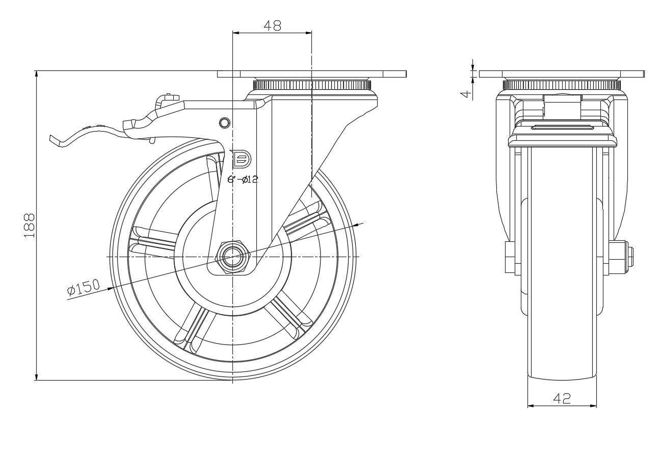 | Wheel tread: Made of high-quality polyurethane Wheel Center: cast iron core Drawings are for reference only and may differ from the product |
