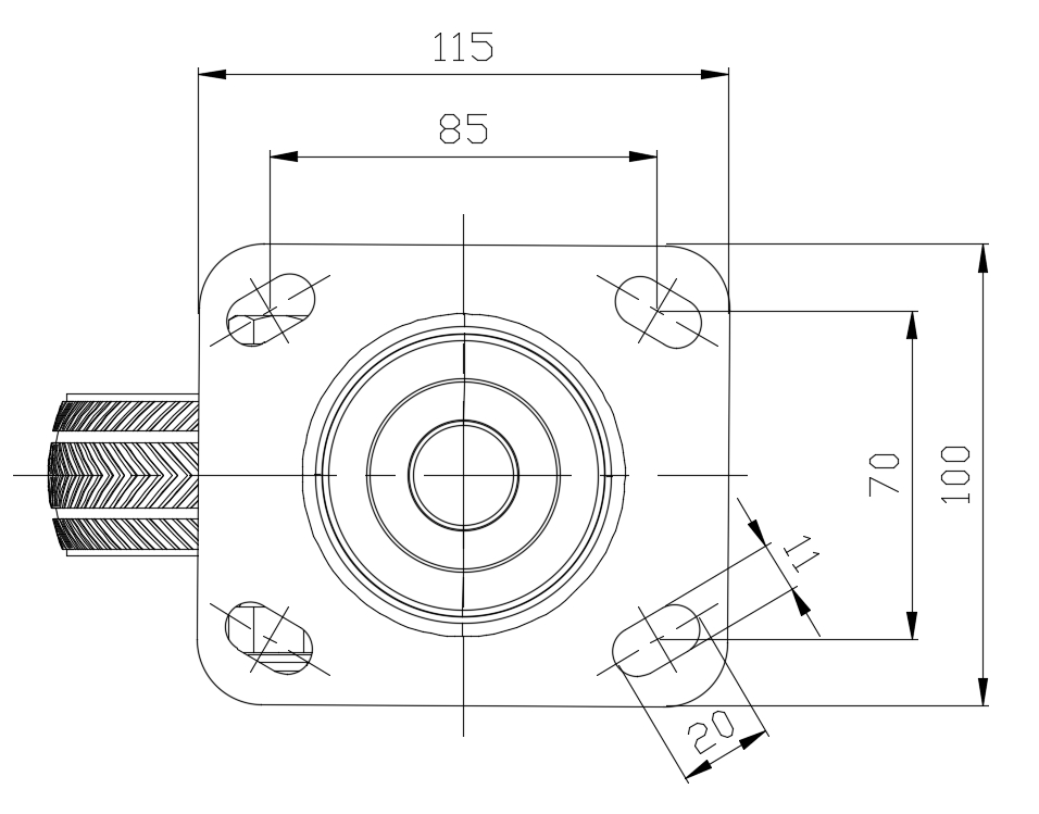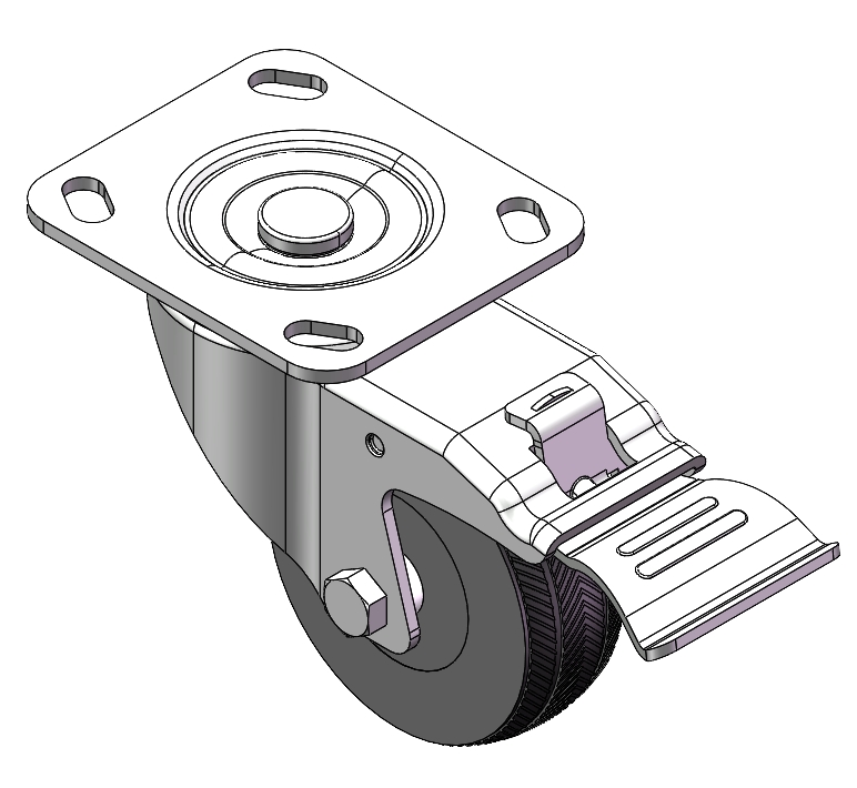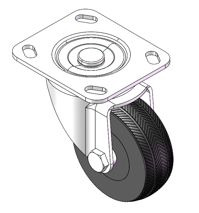 | Swivel Caster with Riveted, Stamping Fork and 85 x 70mm (3-3/8" x 2-3/4") Bolt Hole Spacing Mounting Type. Zine-Plated, Top Plate (4T) Mounting Type mechanism. Cast Iron Wheel Center with High-Quality Resilient Rubber tread. Black, Bearing with Ball Bearing. |