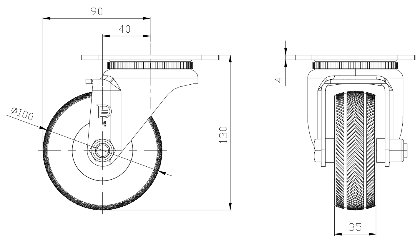 | SX Rubber Wheel Diameter × Wheel Width 100 x 35mm |